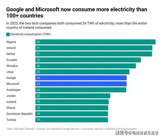 2023年谷歌和微软用电量已超过100+国家