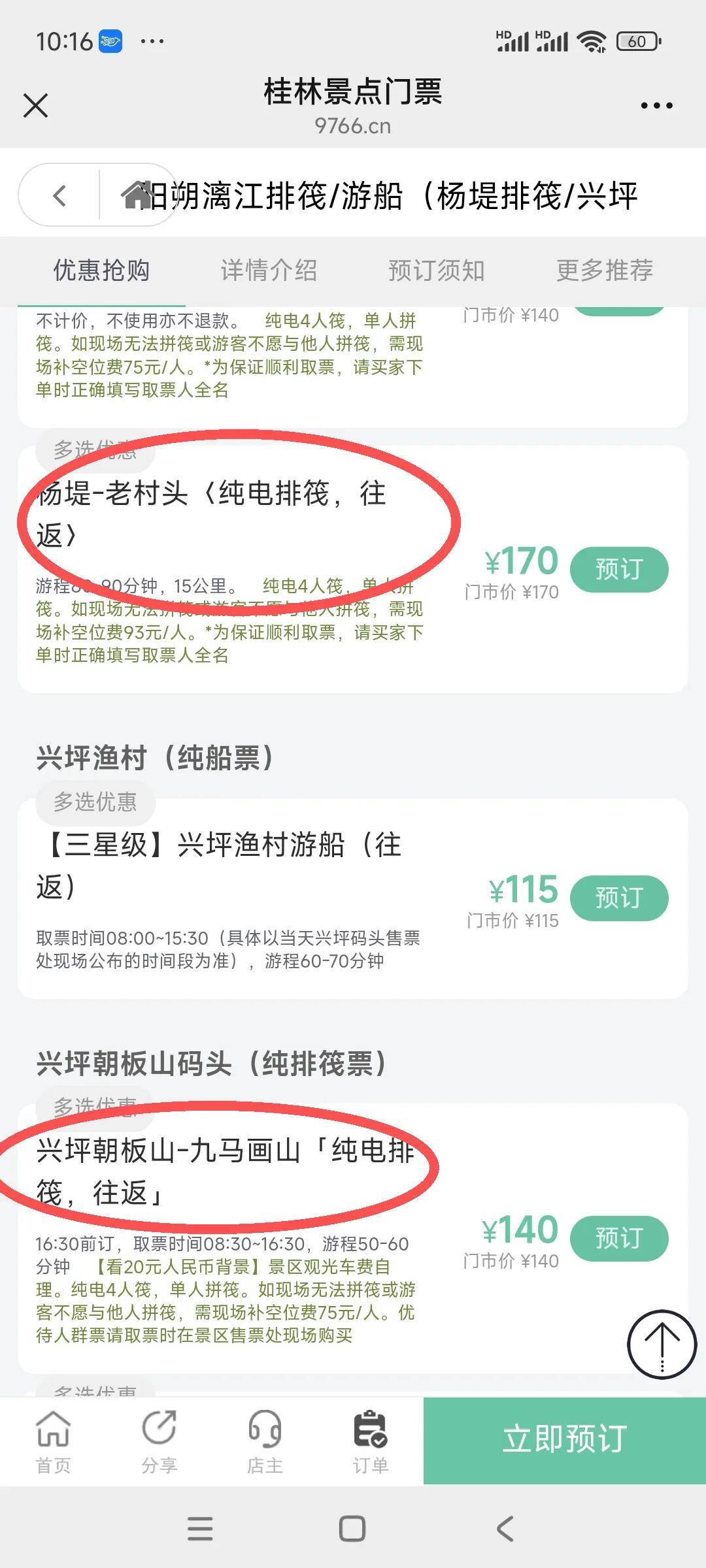 预约漓江竹筏门票有多个渠道,但是还是比较推荐公众号桂林阳朔游船票哥,这里卖的是官方票源,属于靠谱的第三方,不仅仅有门票,也有一些实用的游玩攻略,进入后直接到菜单选择漓江竹筏,就可以进入买票页面了(也可以直接识别海报码),就可以发现很多漓江竹筏的线路和相关价格,具体怎么选择?