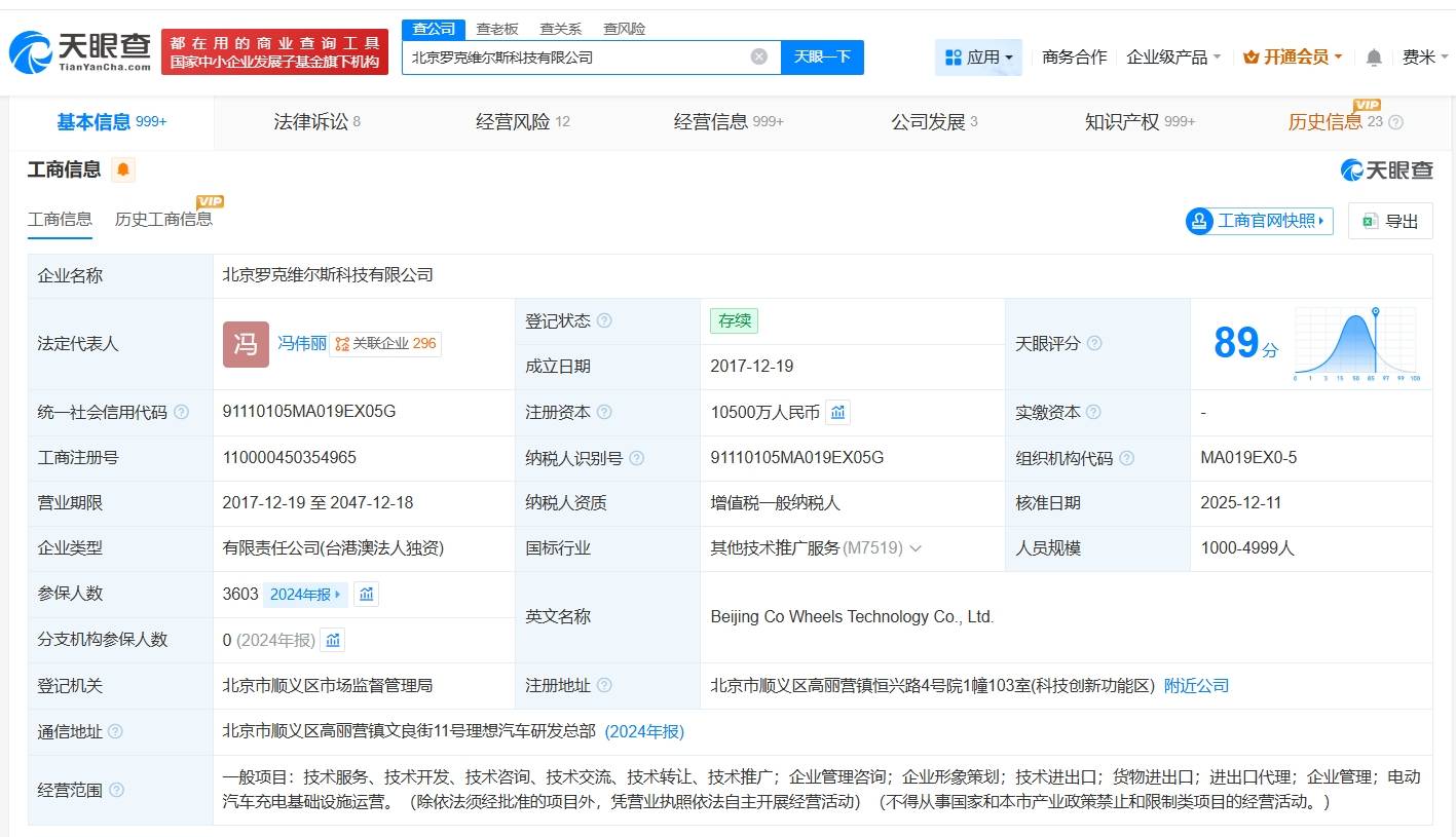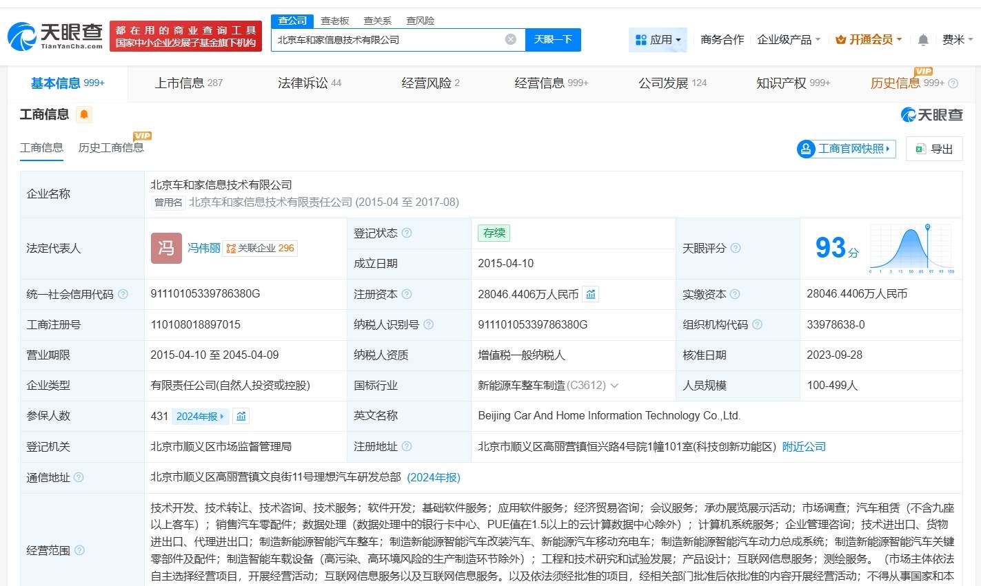 天眼查工商信息显示,理想汽车关联公司北京车和家信息技术有限公司成立于2015年4月,法定代表人为冯伟丽,注册资本约2.8亿人民币,经营范围包括基础软件服务、应用软件服务、经济贸易咨询等。股东信息显示,该公司由李想、李铁共同持股。对外投资信息显示,该公司对外投资11家企业,其中6家企业处于存续状态,其余5家企业已注销。值得一提的是,近期,理想汽车旗下理想智造汽车服务(上海)有限公司、北京励鼎汽车销售有限公司、北京罗克维尔斯科技有限公司均发生减资行为。