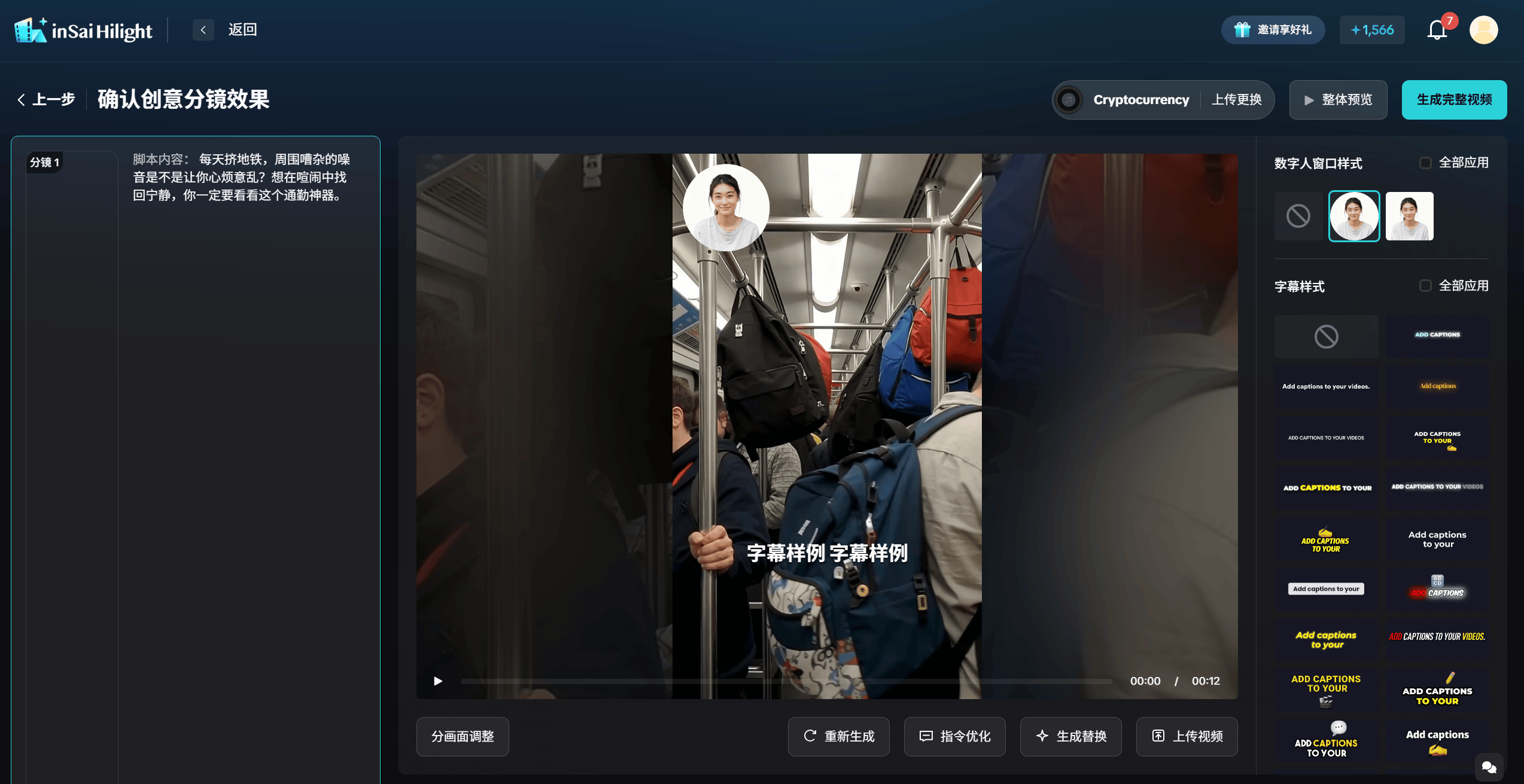面对这些挑战,Hilight给出了成为成熟的,甚至可以说是“投喂式”的AI全包服务。在实际体验过程中,其一键成片的高效、准确、稳定给我留下了深刻印象;创意工坊和数字人功能也成为营销领域不可多得的提效降本“工具箱”。