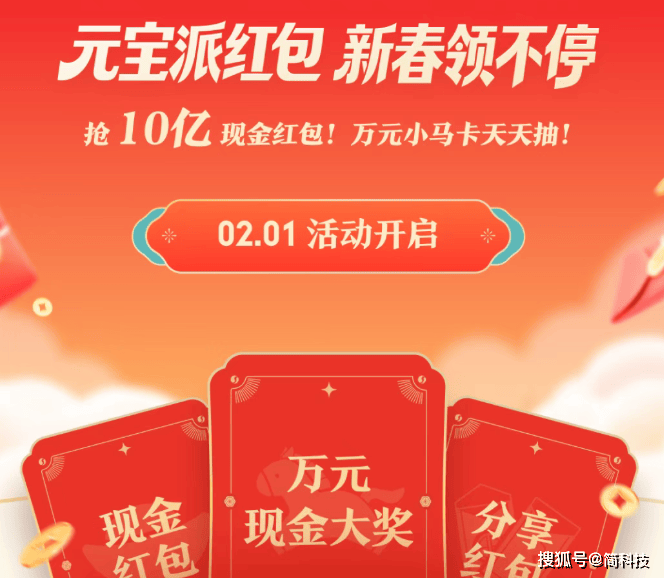 此外,腾讯为了推广“元宝”,宣布将在今年春节活动期间发放 10 亿现金红包,目前该活动已开启预约。