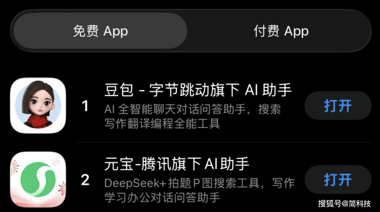 目前国内各大互联网企业都推出了相关 AI 工具,不过在 App Store 免费榜中排名前列的只有豆包与元宝。