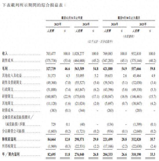 供应商方面,公司向前五大供应商的采购额分别占我们于2023年及2024年以及截至2025年9月30日止九个月总采购额的90.1%、91.3%及85.8%。