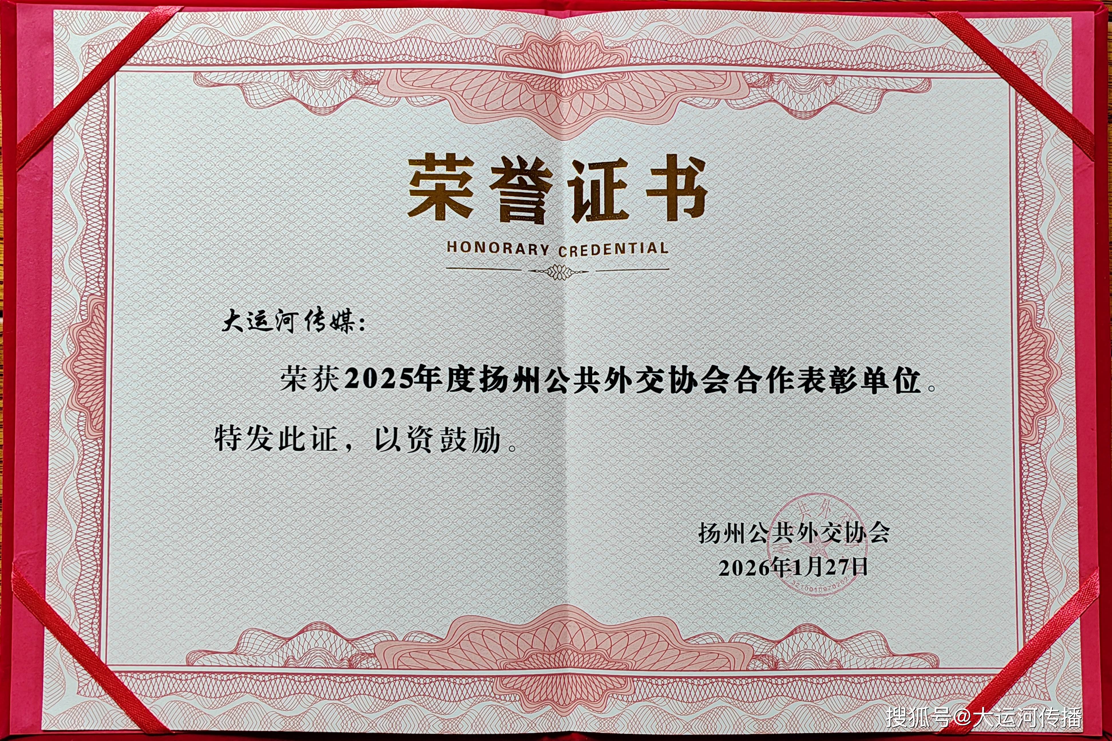 会上,扬州市政协副主席、扬州公共外交协会副会长徐晟宣读2025年度扬州公共外交协会合作表彰单位名单,大运河传媒,以及扬州市公安局出入境管理支队、扬州职业技术大学、扬州大学海外教育学院、扬州市烹饪餐饮行业协会获得表彰。