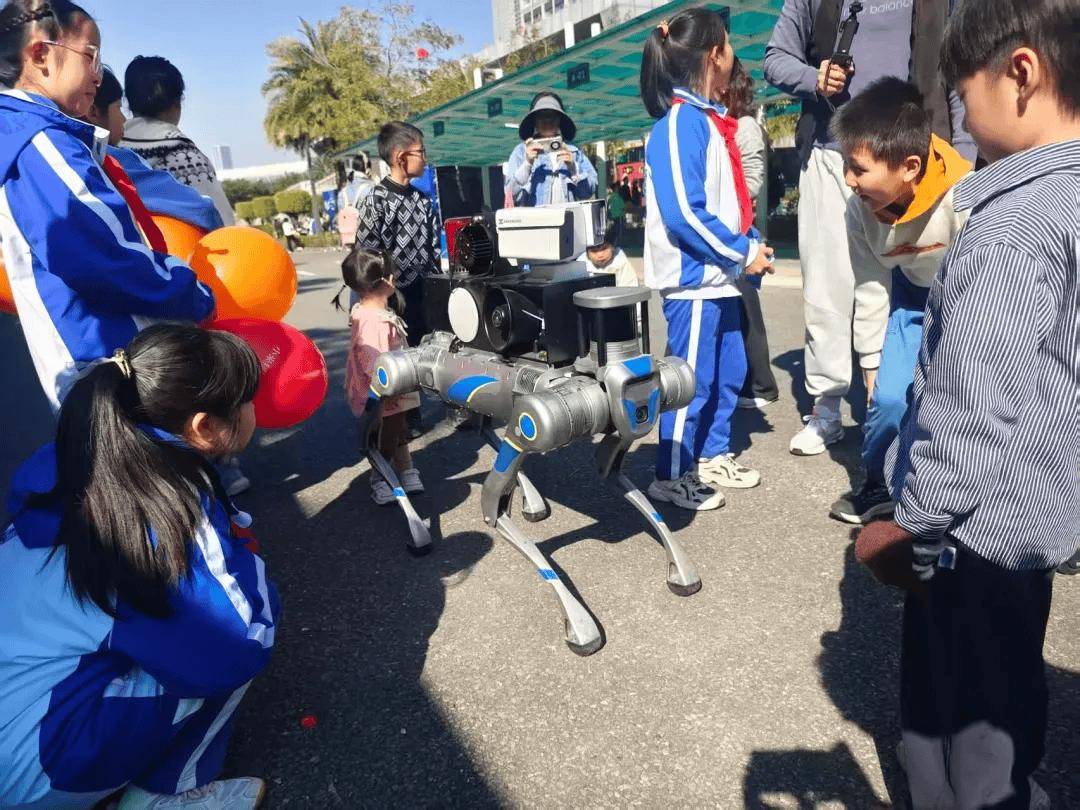 ▲四足机器人在警营展示互动亮相。