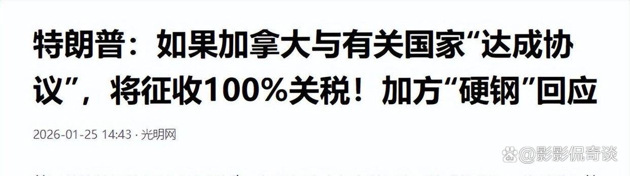 随之而来的是一连串的打击:加拿大被排除出某些国际协调机制;紧接着,一记重拳泰山压顶——美国威胁对所有加拿大输美商品征收100%的关税。这一消息如同重磅炸弹,在加拿大政界和商界同时引爆。这并非空穴来风的市场传言,也不是试探性的放风,而是来自华盛顿最高层的直接警告:若加拿大执意推进与中国的经贸协议,美国将毫不留情地掐断其经济命脉。