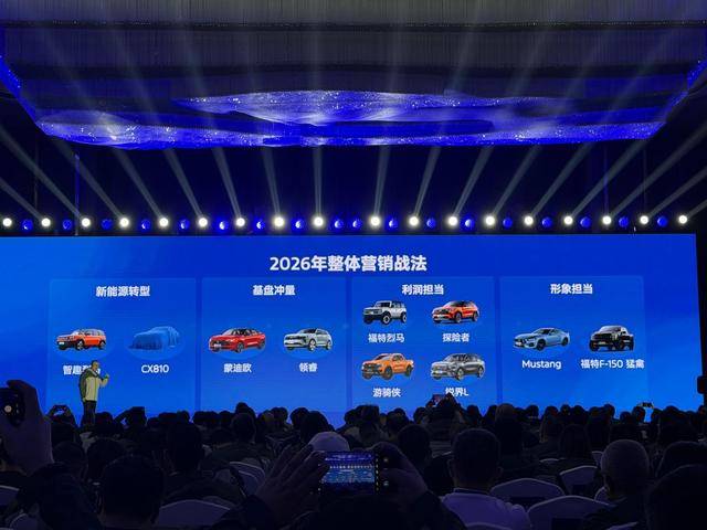 2026年,长安福特蒙迪欧、江铃福特领睿将作为福特的基本盘冲销量;福特烈马、探险者、游骑侠、锐界L将为福特带来利润;智趣烈马和即将发布代号为CX810将作为福特新能源转型的标志。
