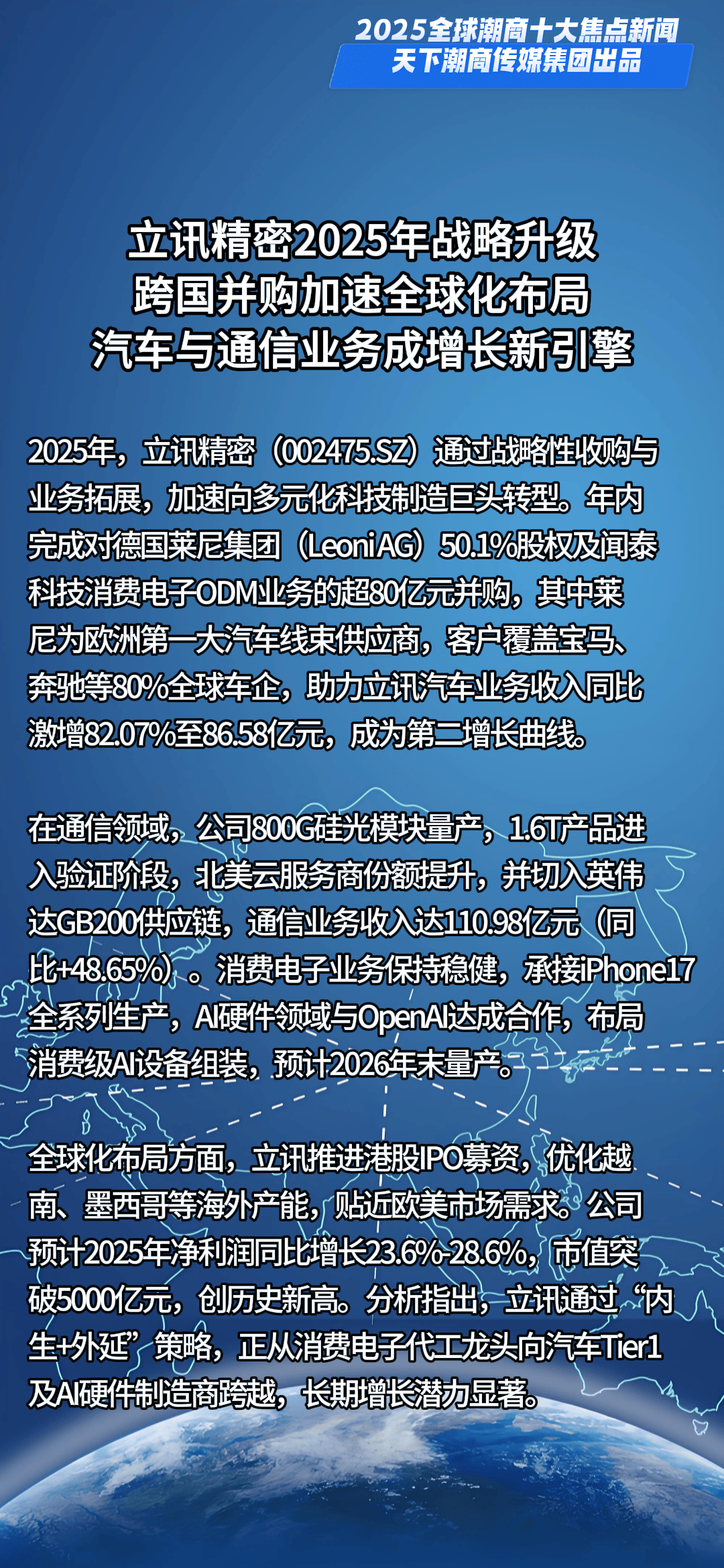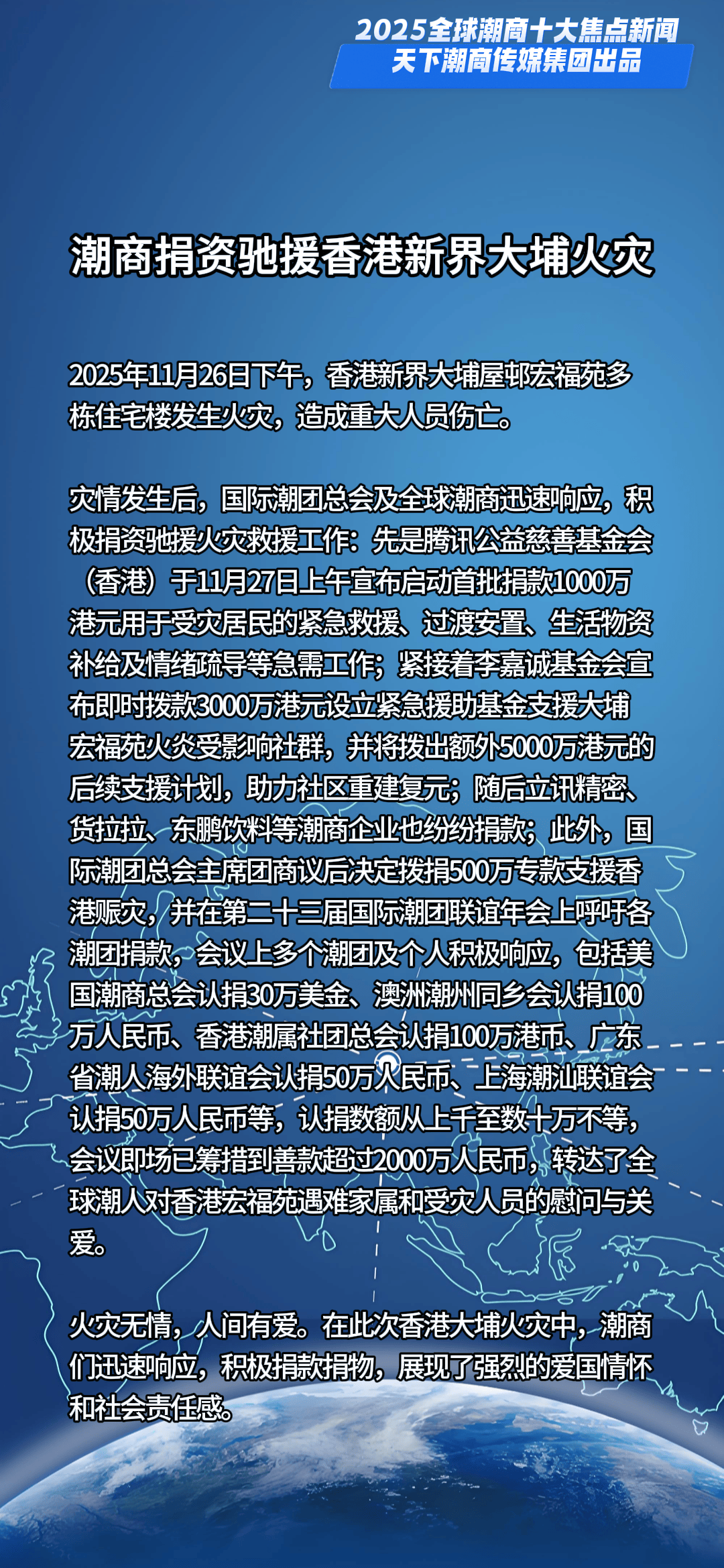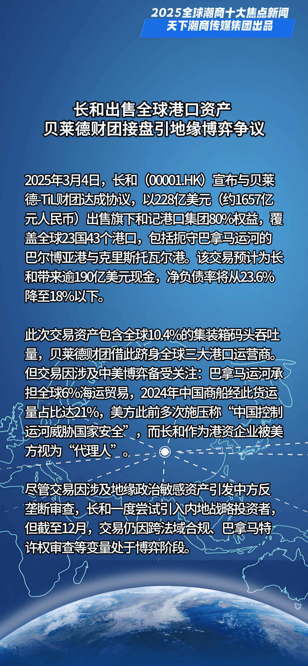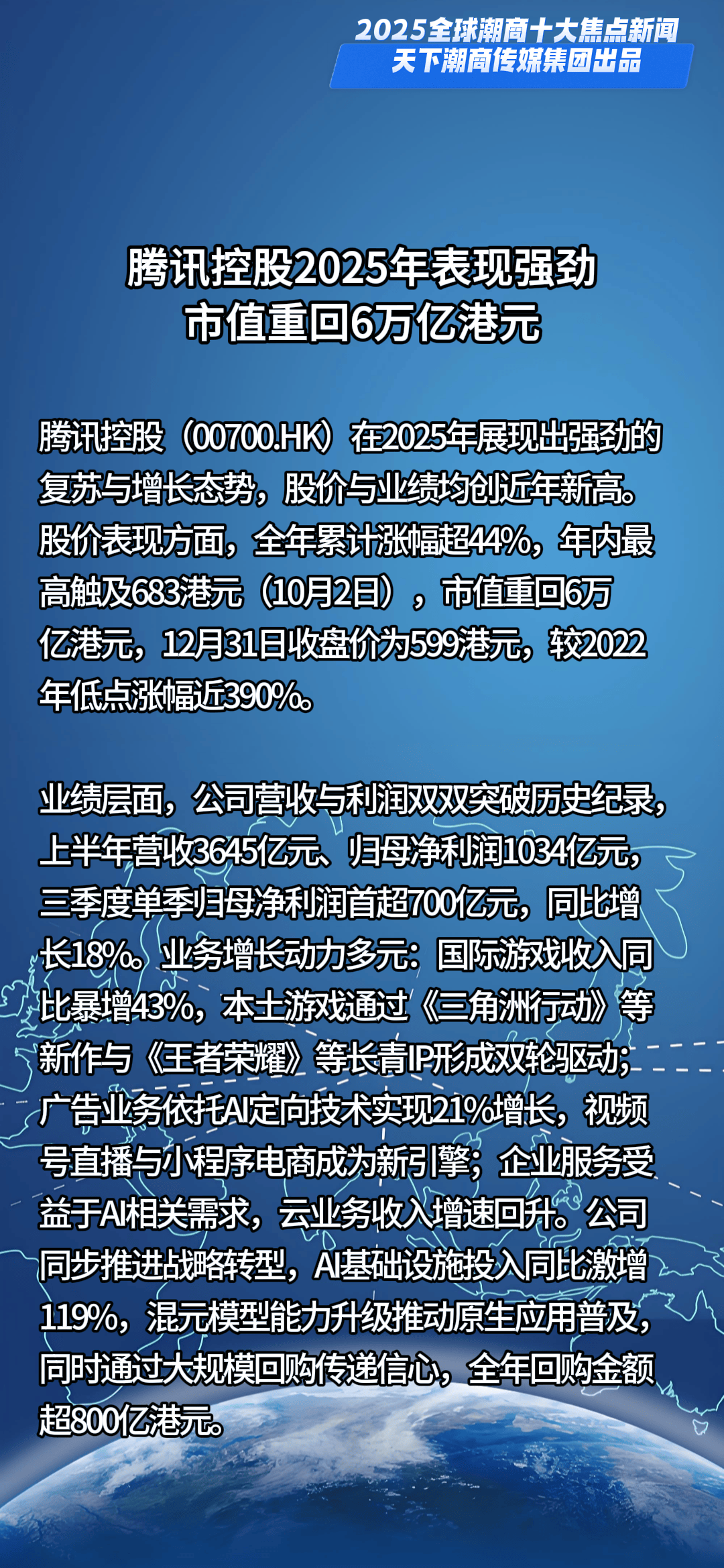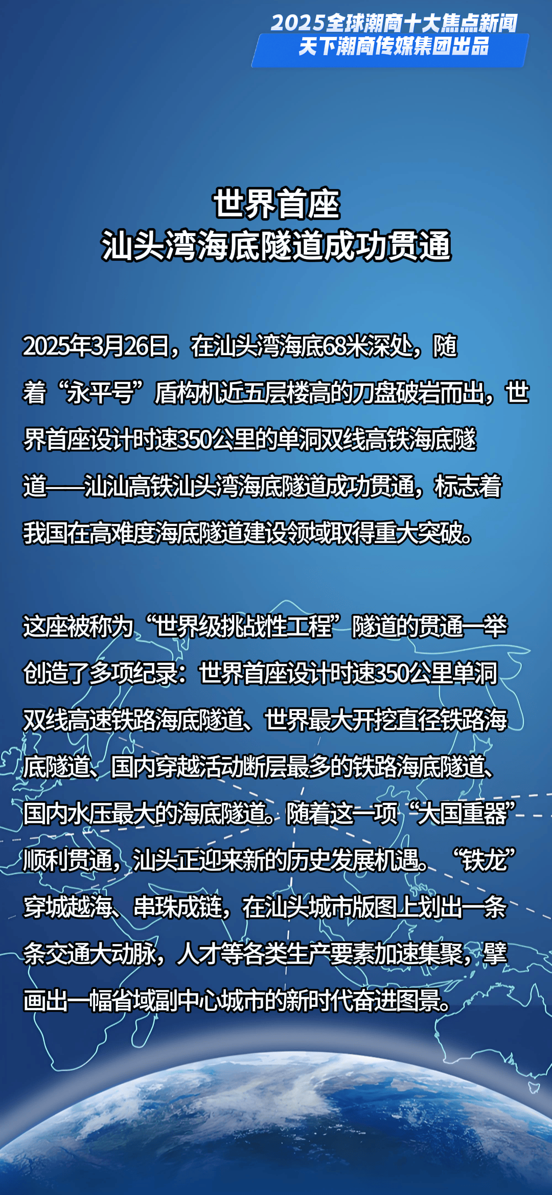 一槌定音,新元已启。当时间的指针划过2024的刻度,全球格局在深度调整中持续嬗变,机遇与挑战如潮水般奔涌交织。面对风云变幻的商业浪潮,全球潮商以勇立潮头的姿态破浪前行,用智慧与汗水浇灌出跨越山海的商业奇迹,在时代的画卷上书写下浓墨重彩的篇章。值此万象更新之际,天下潮商传媒重磅推出新年首份权威榜单——“2025全球潮商十大焦点新闻”,邀您共鉴潮商群体在全球舞台上的高光时刻与硬核实力。