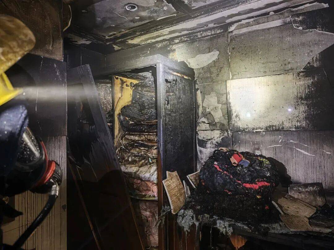 消防员接警后迅速赶赴现场,经勘察确认,大火集中在南侧房间, 主要燃烧物为木床,所幸无易燃易爆物品堆放。