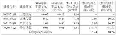 注3:计算2024年可比公司扣非前静态市盈率均值及扣非后静态市盈率均值时,剔除异常值山鹰国际、景兴纸业。