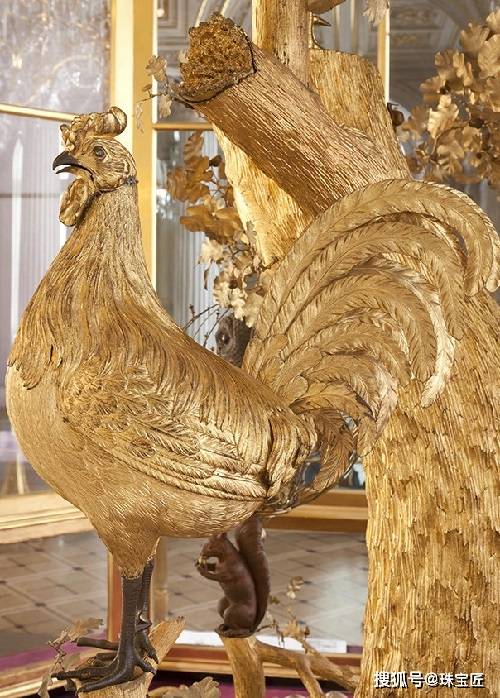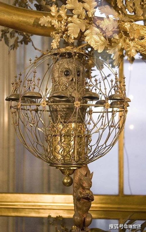 当整点钟声响起,机构会按序触发:猫头鹰开始眨眼并转头,孔雀随后张开其镶满宝石的尾羽并缓慢转动身躯,最后以公鸡的啼鸣收尾,堪称当时机械工艺与珠宝艺术的巅峰之作。