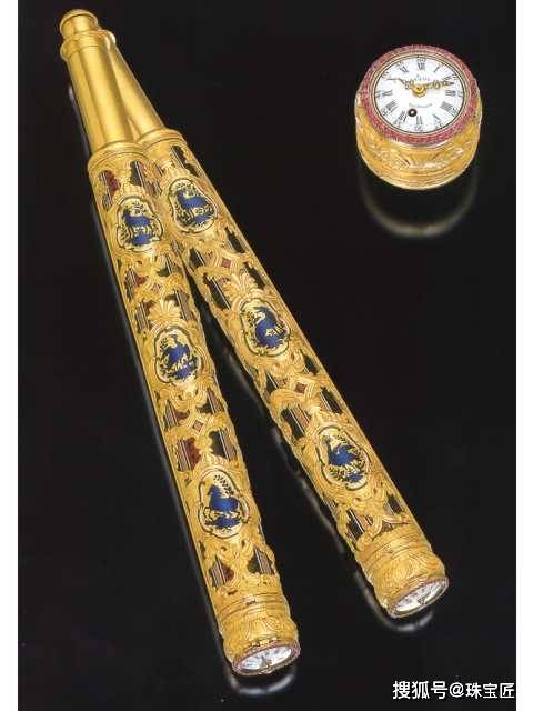 珐琅黄铜和22K金镶嵌红宝石望远镜,内置手表