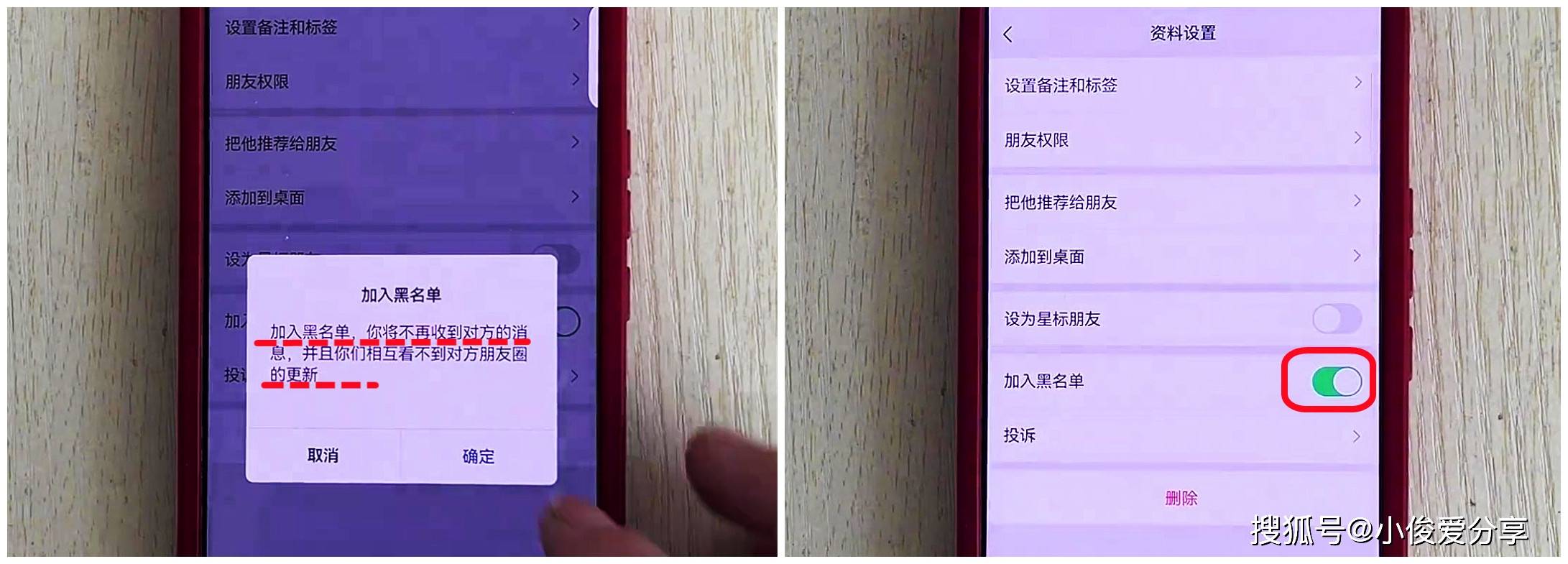 怎么操作呢?首先啊,我们找到这个好友,然后点一下他的头像,接着啊,我们点击右上角的三个小点,大家看到了吧?我们点一下这个按钮,然后找到“加入黑名单”的选项,直接点确定,把他也加入到我们的黑名单里面。