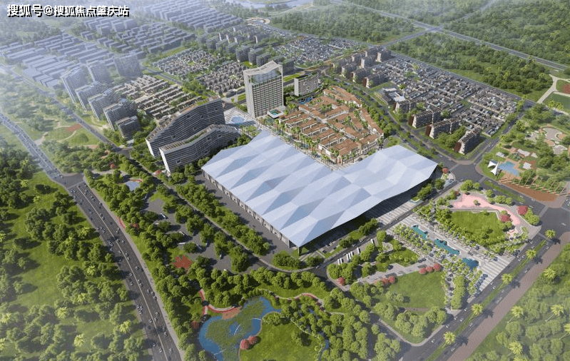 会展版块:整个会展会议中心总占地面积 7.48 万方,博览中心面积约 2.3 万平方米,展厅为单层净高约 12 米的无柱大跨空间,可灵活划分至 4 个约 5000 平米的展场,可同时满足万人大型会议及五千人的宴会使用。