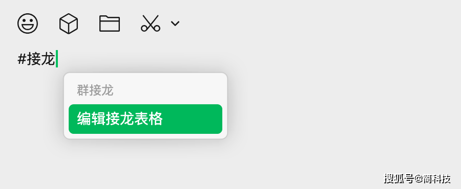 首先,加入了群接龙功能,现在我们只需要在群聊中输入「#接龙」,这样即可编辑接龙表格,群友收到后只需点击「参与接龙」即可参与。