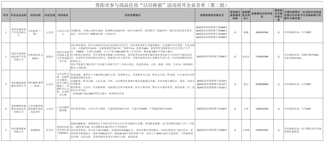 该活动秉持企业自愿参与原则。第二批房企名单的公布,意味着贵阳“以旧换新”政策持续推进。新增的5个楼盘项目扩大了市民选择范围,使参与活动的楼盘总数达到21个。