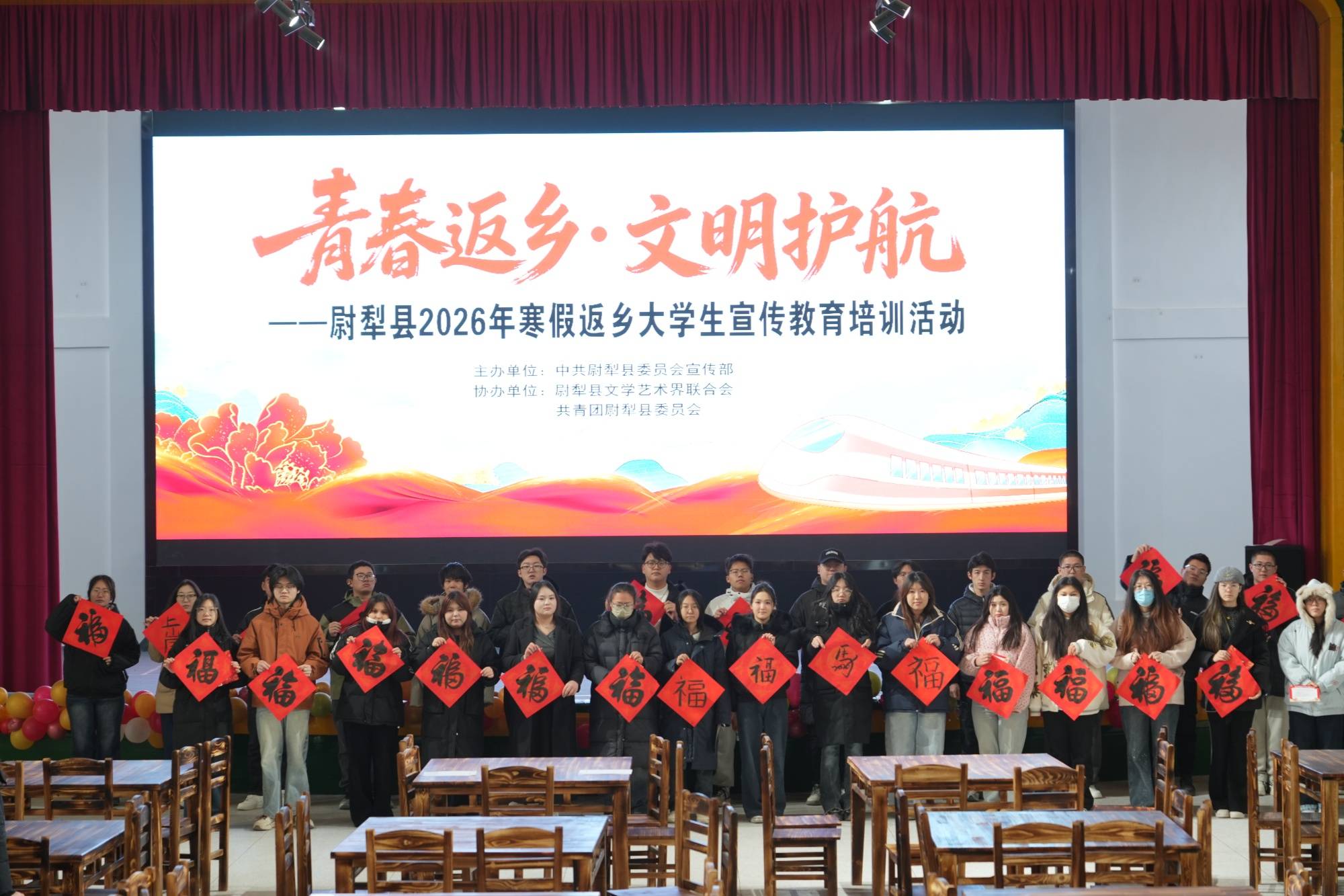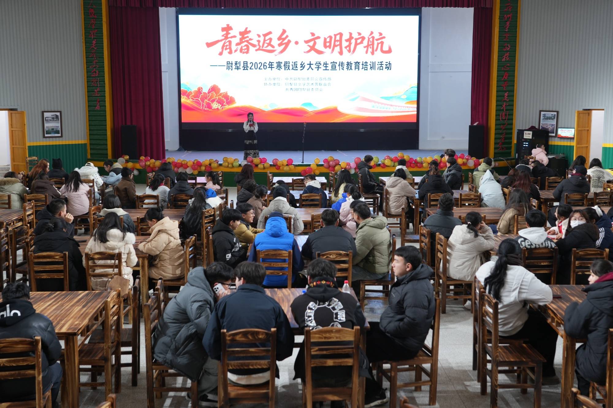 1月28日下午,新疆尉犁县老电影院内暖意融融、掌声阵阵,由尉犁县委宣传部牵头,县团委、县文联联合协办的“青春返乡·文明护航——寒假返乡大学生宣传教育培训活动”在此温情启幕。百余名返乡大学生怀揣热忱而来,在一场集知识宣讲、实用技能、文化体验于一体的沉浸式活动中,感受家乡关怀、筑牢安全防线、厚植家国情怀,为这个寒假注入了别样的青春活力。