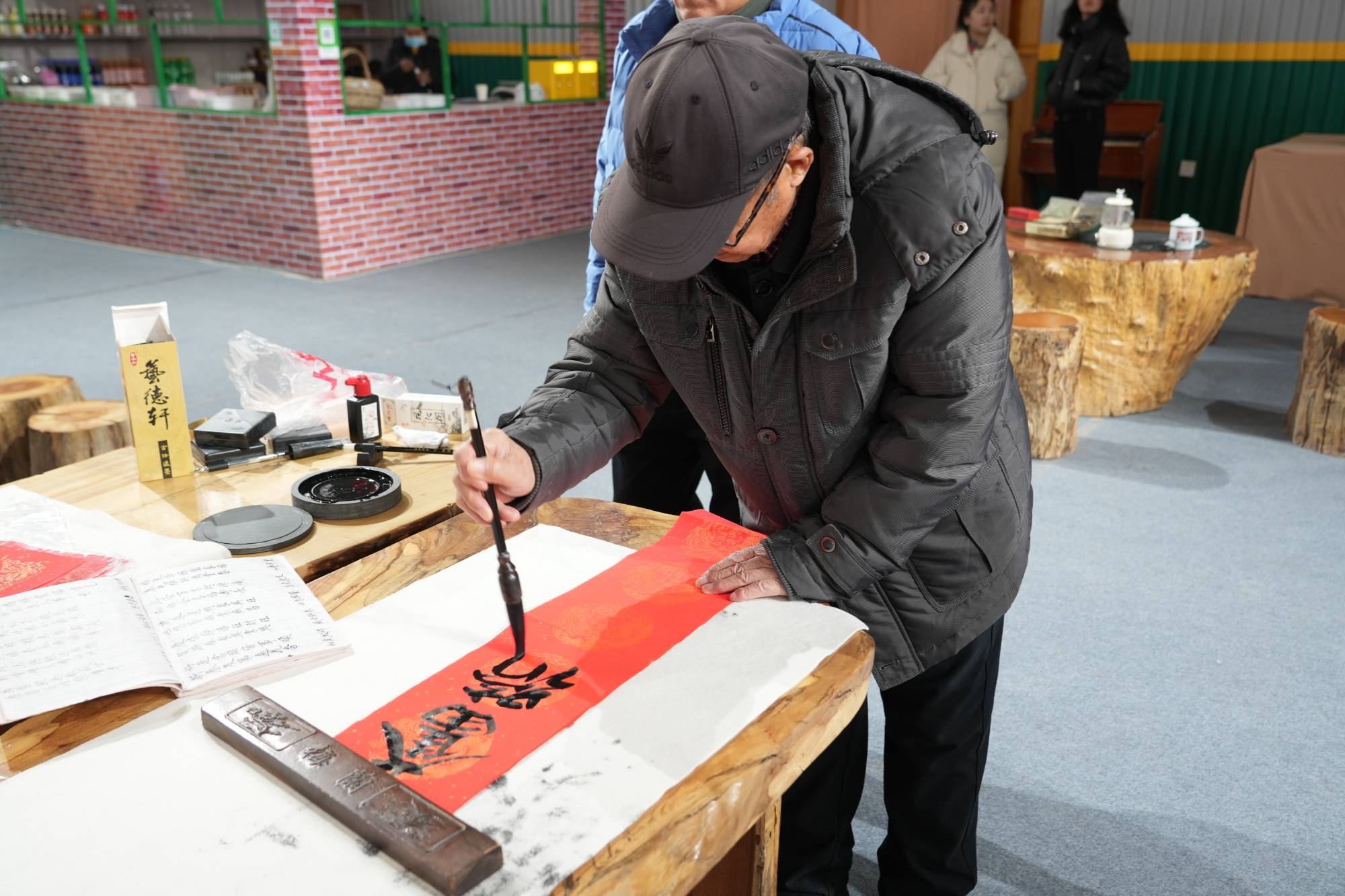 另一边的“迎新春 送春联”现场更是笔墨飘香、年味十足。本地书法爱好者挥毫泼墨,笔走龙蛇间,一副副寓意吉祥的春联、一个个遒劲有力的“福”字新鲜出炉。大学生们有序排队领取,脸上洋溢着喜悦;不少同学还主动走进“互动书写角”,拿起毛笔亲手书写新春祝福,在笔墨挥洒间感受中华优秀传统文化的独特魅力,现场满是欢声笑语。