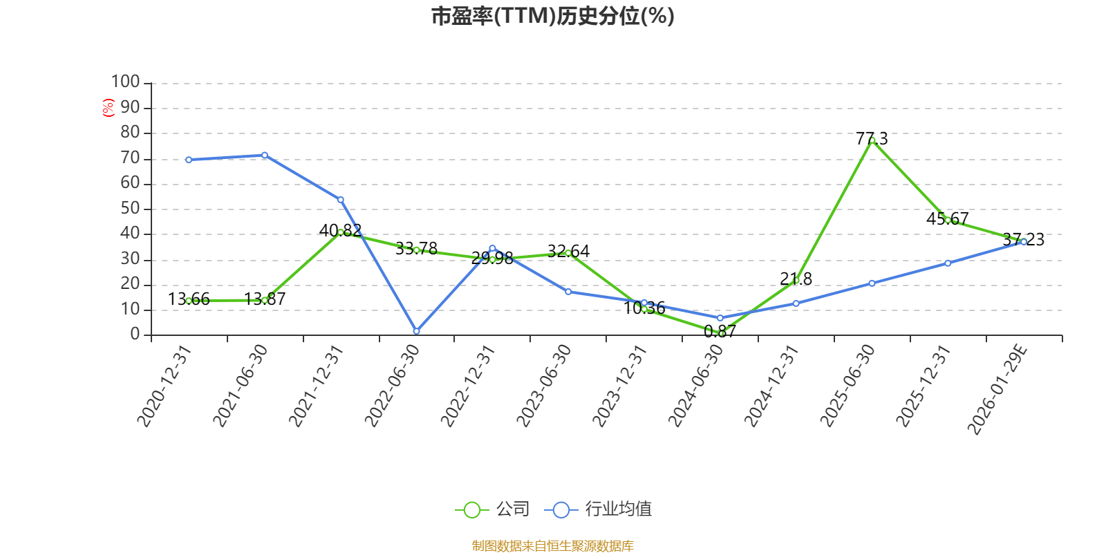 以本次披露业绩预告均值计算,公司近年市盈率(TTM)图如下所示: