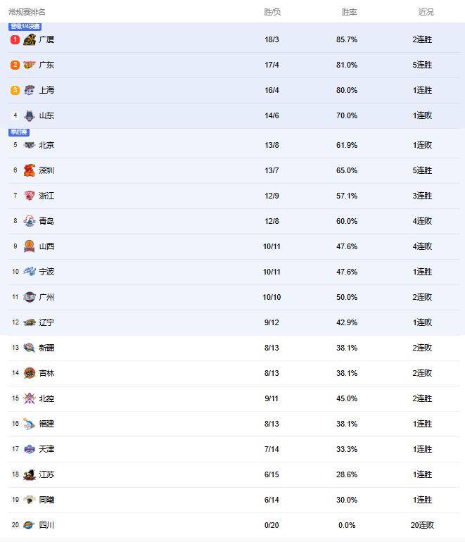 看一下CBA积分榜最新的排名,浙江重新杀回第1位,广东和上海分列第二位和第三位,山东队上升到第四位,不过与排在第三位的球队差了两个胜场,已经拉开了差距。二辽宁队输给宁波队后,排名已经跌至第12位。
