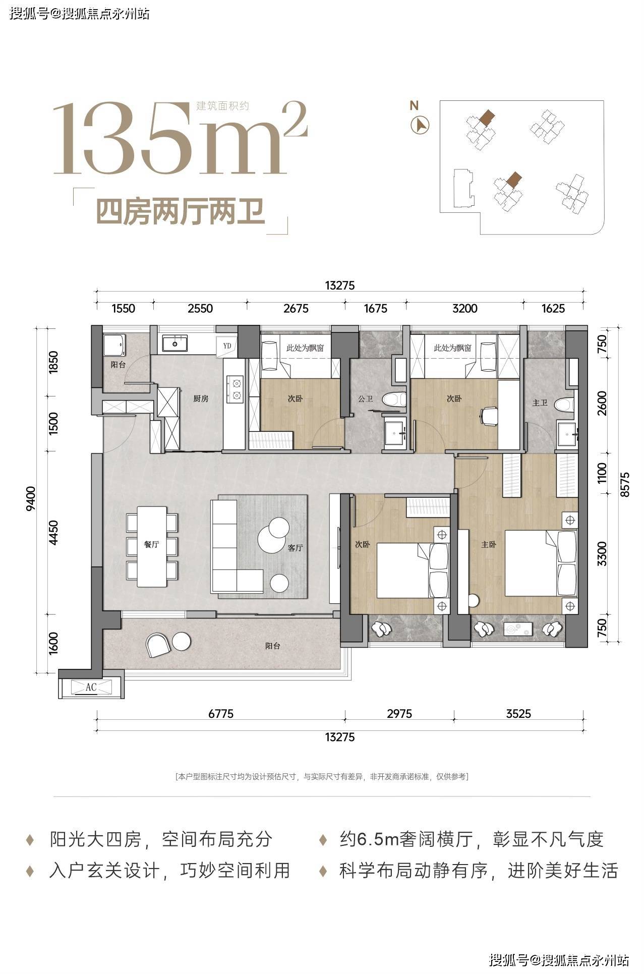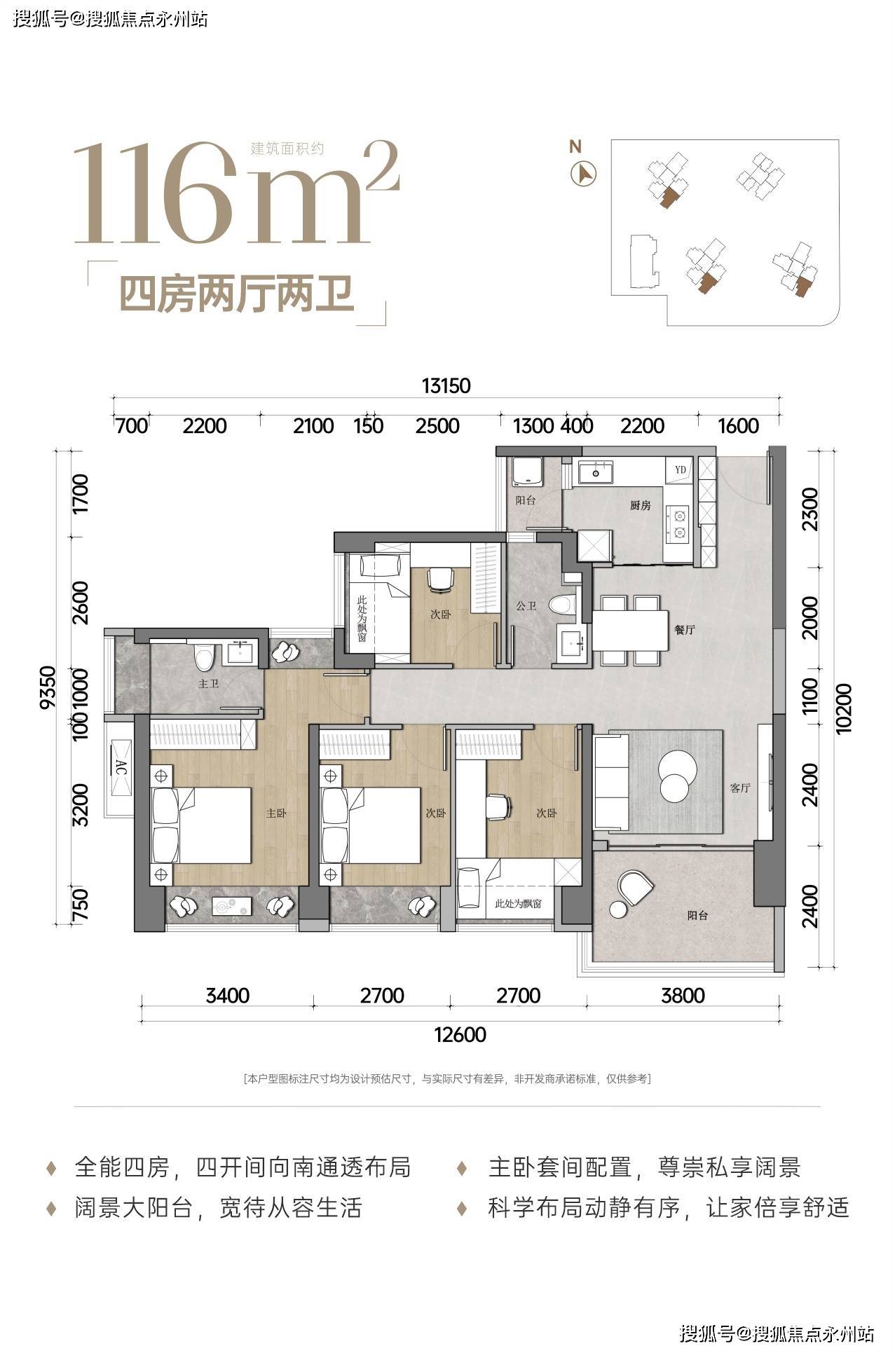 项目采用围合式塔楼布局,这种布局很是精妙,楼间距宽,视野好,每户的采光通风都不错,再加上市面上少有的4.16低容积率,户型上,科学布局全明空间,全景观飘窗;新加坡式社区园林,全龄段活动空间,让居住体验感氛围拉满。