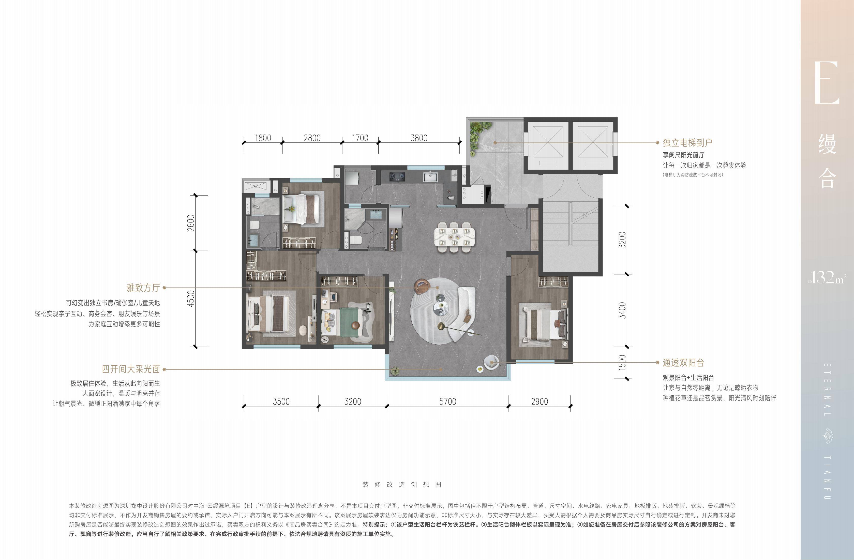E户型 建面约132㎡四室两厅两卫