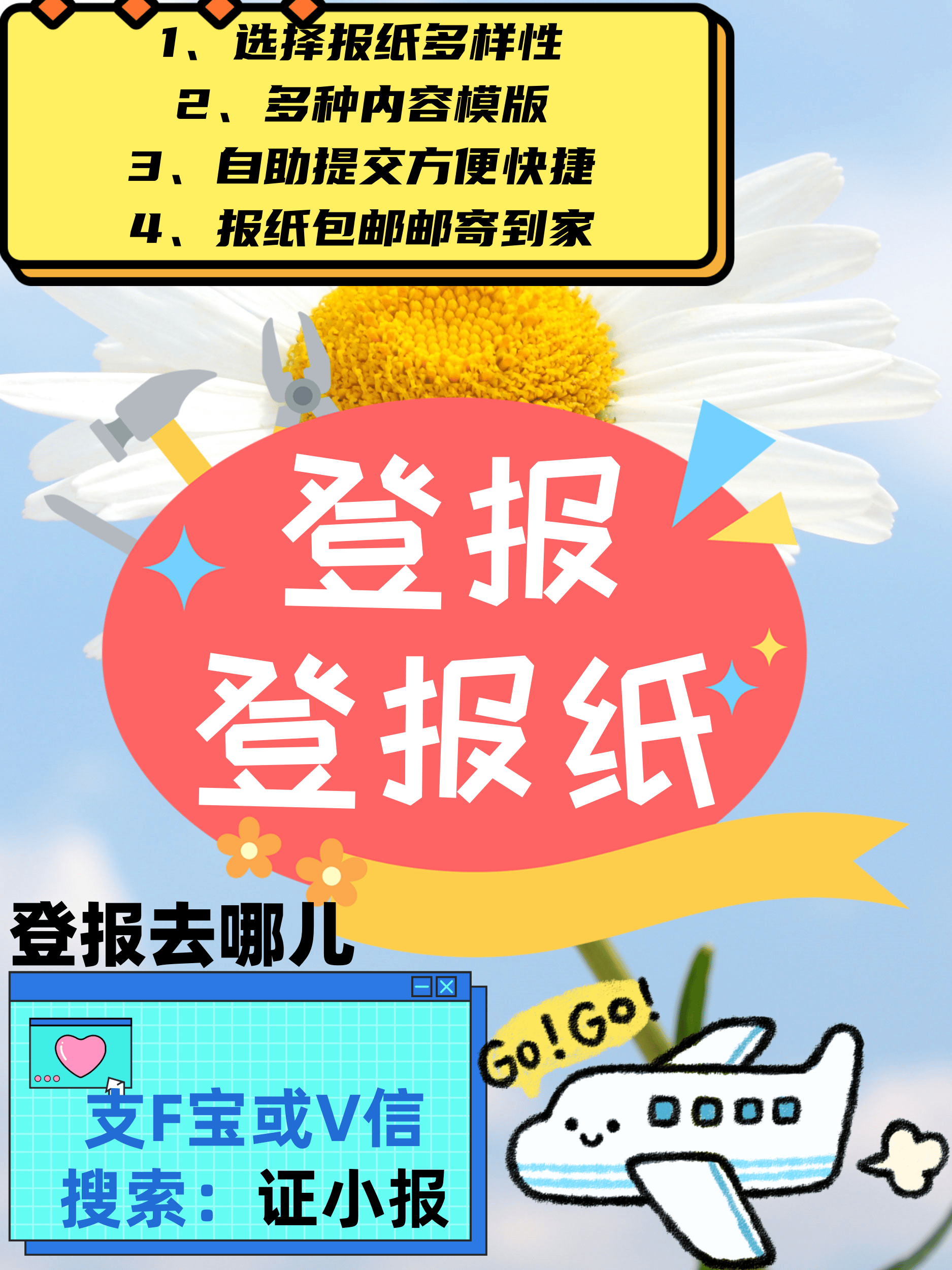 支付宝或微信搜索【证小报】自助登报,只需几分钟即可完成整个登报流程,无需出门,全天候可办理。