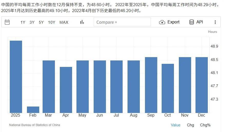 据国家统计局数据显示,2025年,全国企业就业人员周平均工作时间为48.6小时。这意味着,比法定的一周40小时多干了近一天。