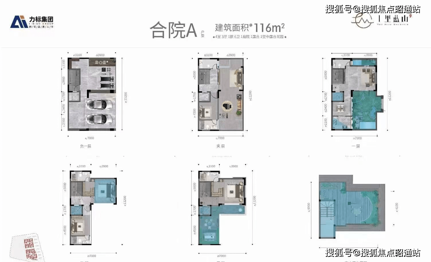 合院A ——【建筑面积约 116㎡】—— 4室3厅1厨6卫1庭院1露台1空中露台花园