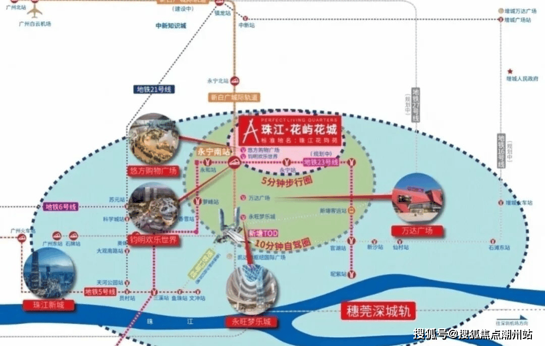交通配套永宁板块目前没有地铁。交通出行主要依靠自驾或者公交。花莞高速。(宁西互通口距离项目7公里)联通花都东莞 40分钟抵达白云机场 20分钟速达东莞。增天高速,(黄岭互通口距离项目9公里)串联增城天河 30分钟速达天河。济广高速,(新新大道入口距离项目9公里)实现半小时到科学城 一小时抵达天河。新白广城轨(开发区站距离项目4公里)串联新塘TOD 半小时湾区核心城市,目前施工中。