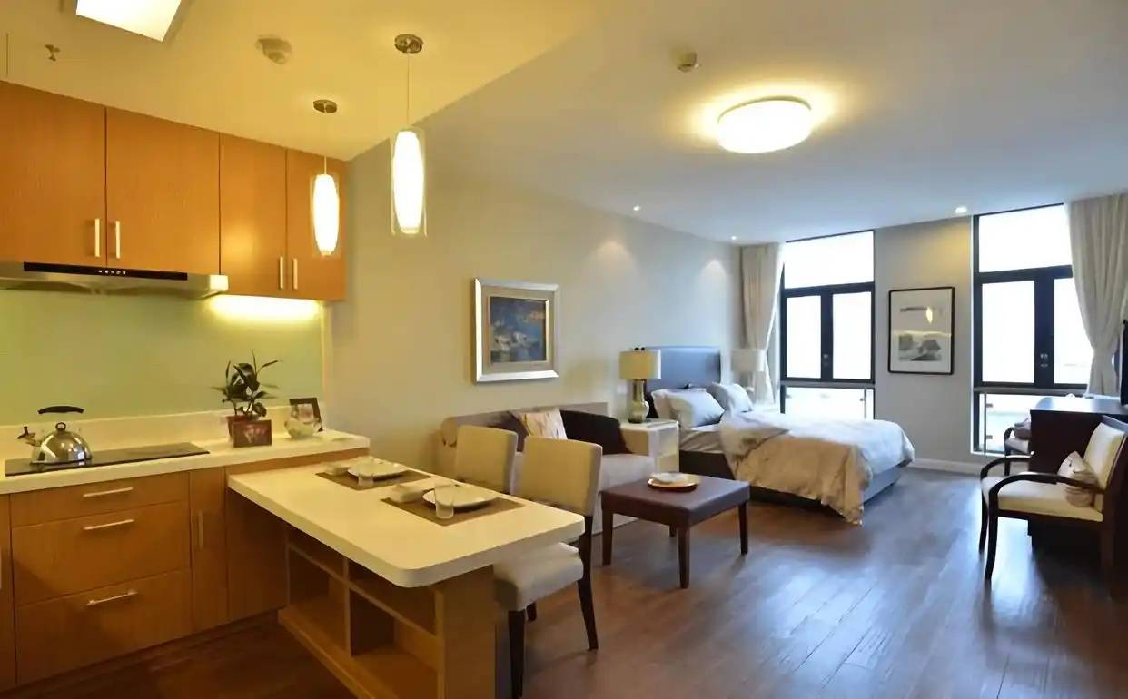 星堡中环养老社区二期的设计充分考虑了长者的生活需求和身体特点。从入户门到室内家具,都采用了适老化设计。1.2米宽的入户门、无高差门槛及圆角打磨家具,方便轮椅和助行器通行,避免了长者磕碰受伤。卫生间的防滑地胶、折叠淋浴椅和24小时紧急呼叫按钮,为长者的安全提供了保障。