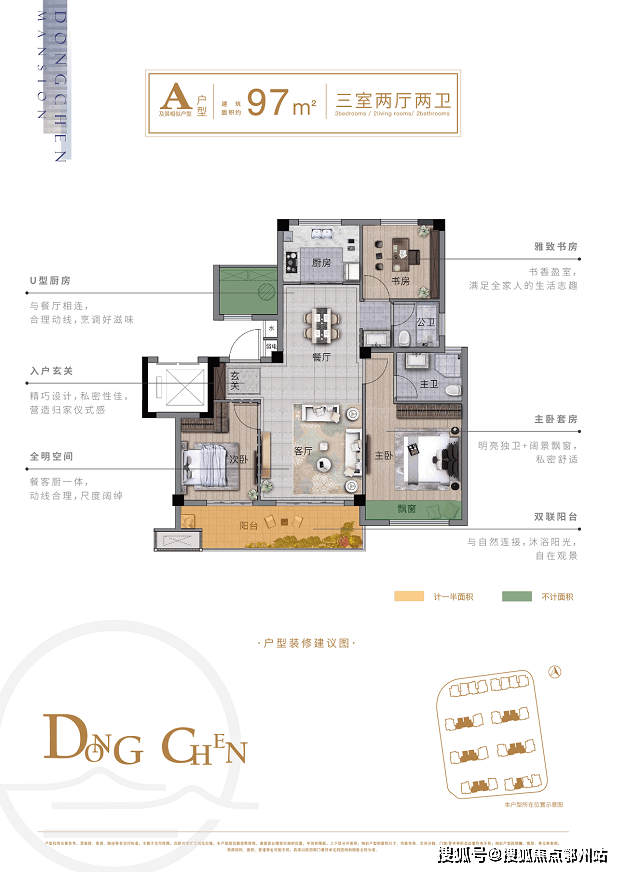 建面约97-115㎡的户型,是刚需家庭的不二之选。整体户型方正,布局合理,没有浪费一丝空间。