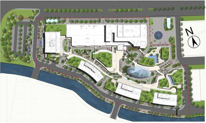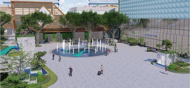 悦合国际以“都会森林、诗意生活”为设计理念,打造包含滨河绿廊、屋顶花园、下沉广场、童梦童趣、亭台叠水、露天音乐广场等于一体的全年龄段综合商业体