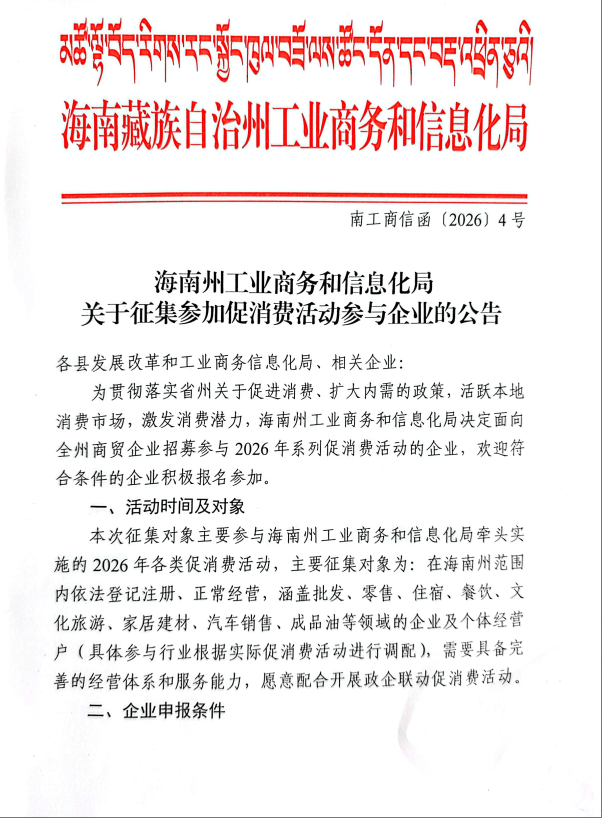 【公告】关于征集促消费活动参与企业的公告
