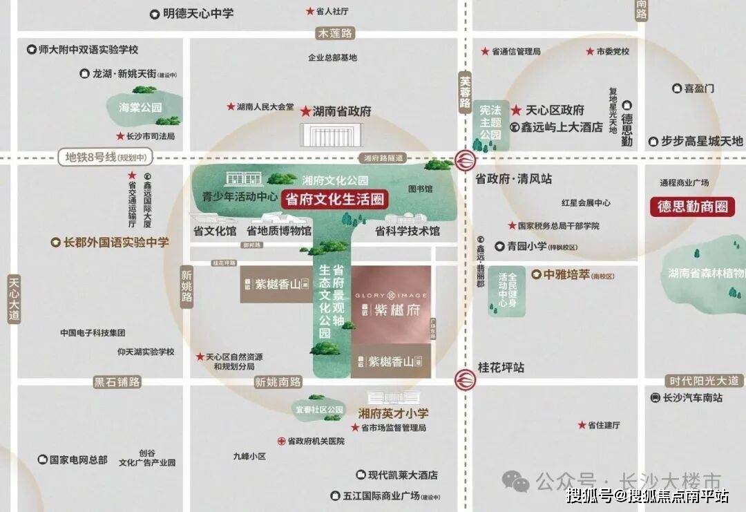 6、商业集群 咫尺繁华:约3公里范围内,德思勤、星城天地、天街等商业配套完善,满足全业态的购物、休闲需求。
