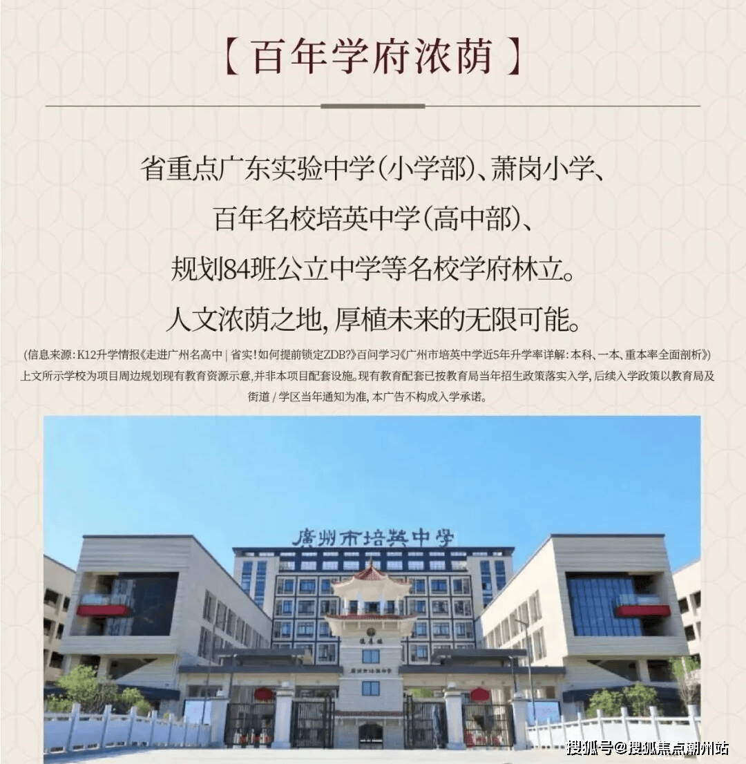 学校方面,虽然没有配建学校,但参照周边楼盘,(全地段摇号)有萧岗小学/与广东实验中学(小学部)、百年培英中学(高中部)为邻,培英中学高考升学率稳居90.3%,形成从启蒙到高中的全龄优质教育矩阵(具体学区以官方划分为准)