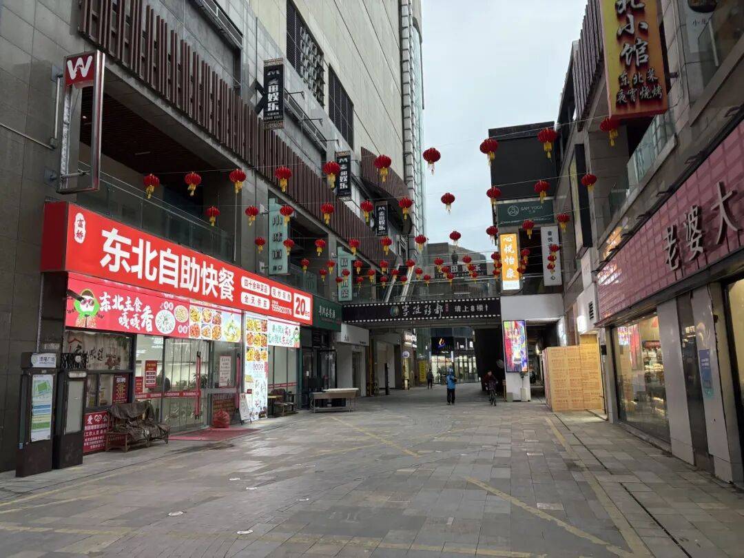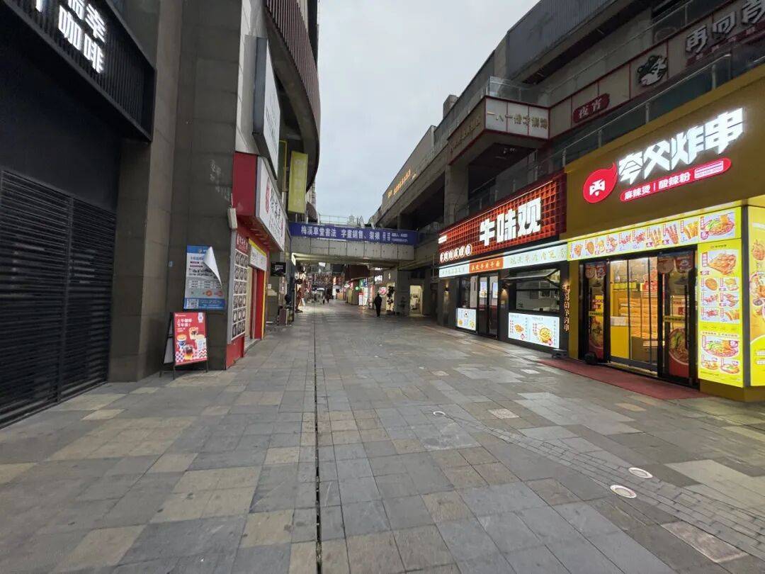 广场外的美食街曾是“夜经济”的代表,奶茶、烧烤、小吃摊琳琅满目。但如今,除蜜雪冰城、巴邑火锅等少数品牌凭借品牌效应维持人气外,多数店铺门庭冷落,甚至出现“旺铺出租”的尴尬局面。