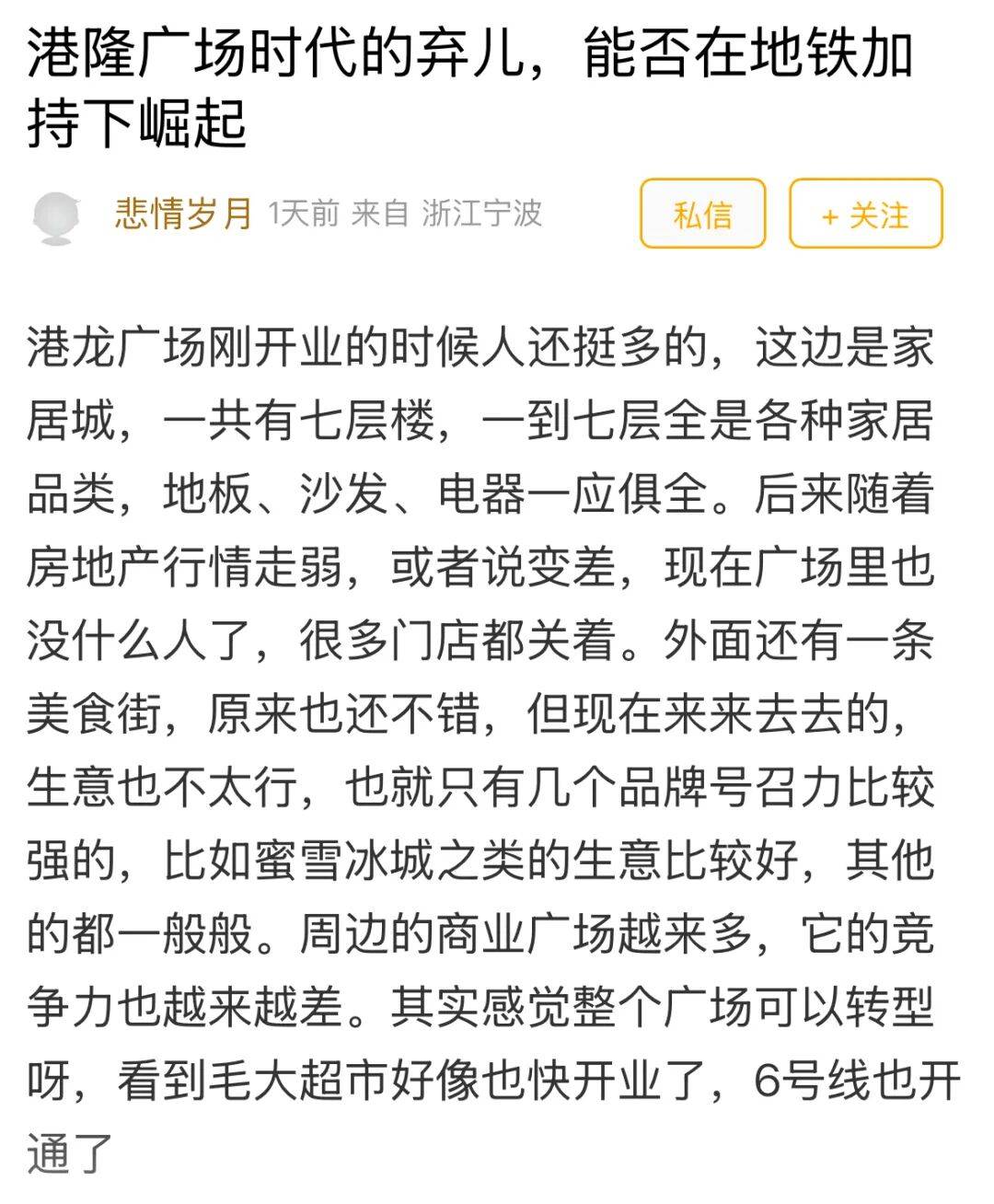 地铁与超市的加持,为港隆广场提供了“翻红”的基础,但能否真正逆袭,仍存在挑战。如网友所言: 真正的“翻红”需要从“单一功能”向“复合生态”进化。