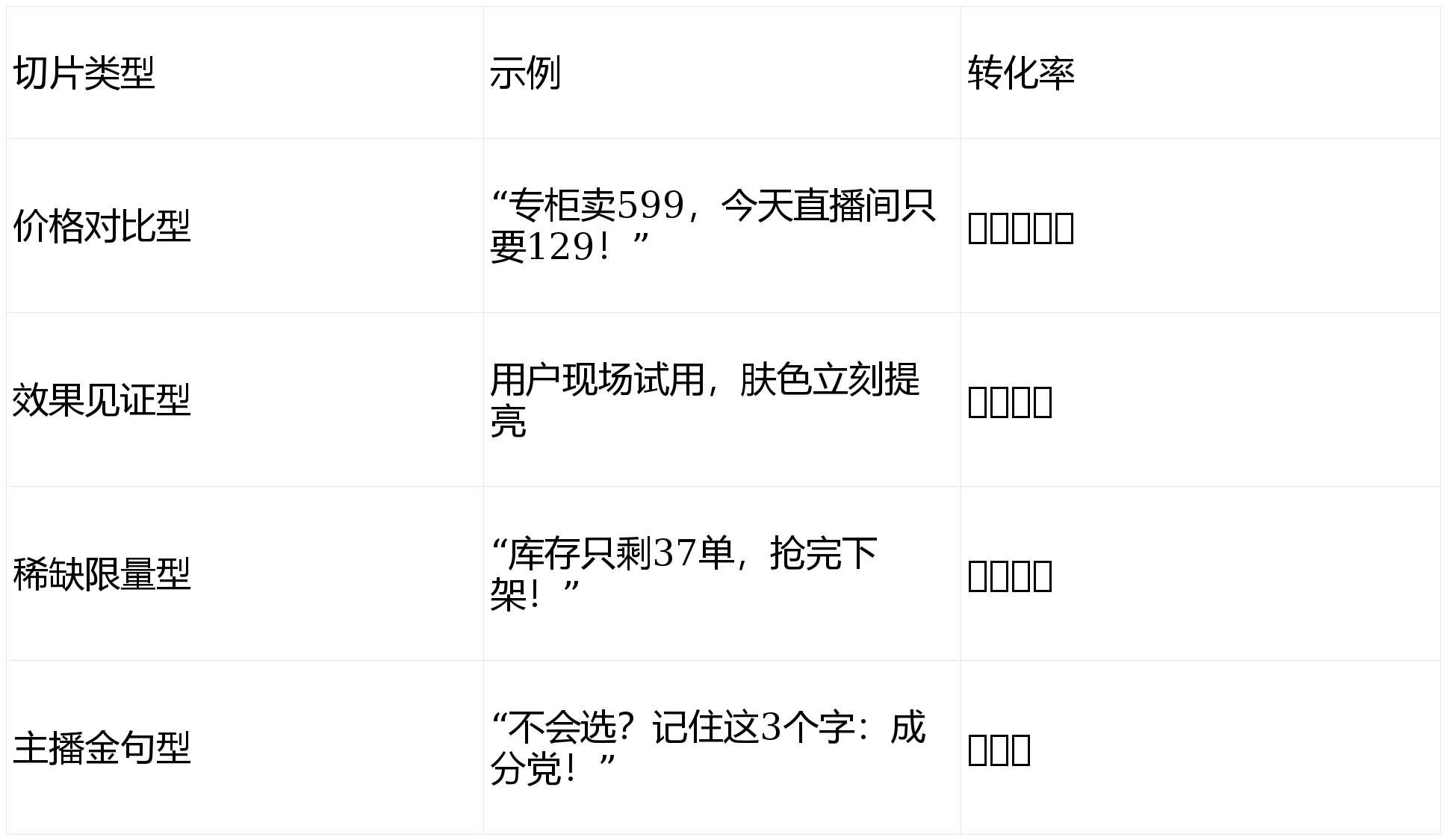 一段有效带货切片应包含:
