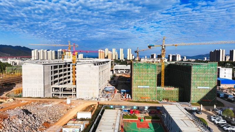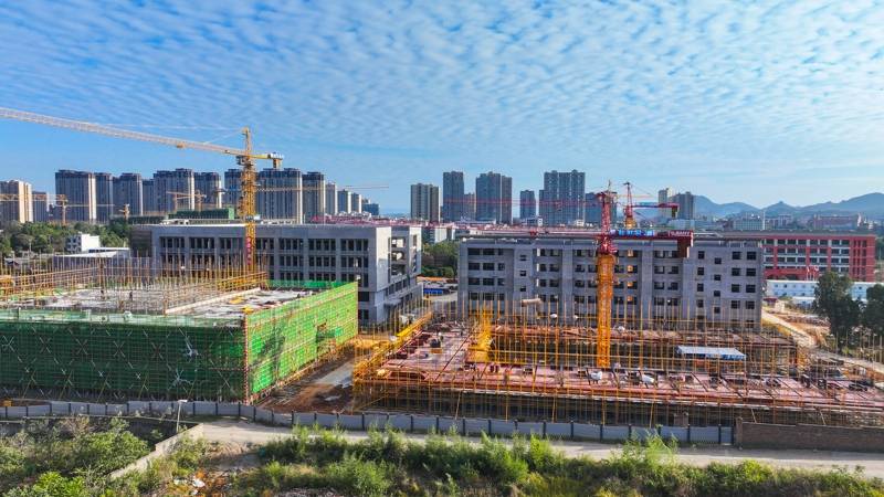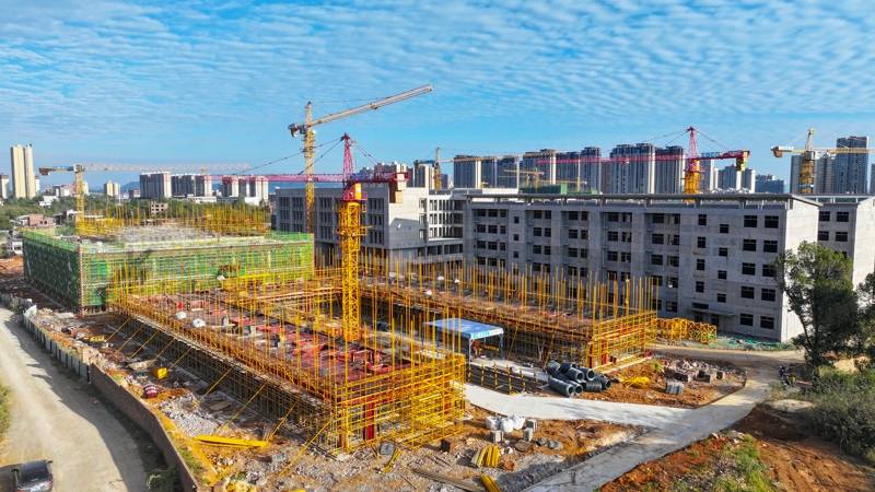 今日永州讯(通讯员 刘贵雄)11月20日,永州市新田县职业教育培训产教融合项目建设工地,吊塔林立,机械轰鸣,各工种的施工人员抓紧施工作业,现场一派繁忙的景象。该项目系“十四五”期间重点教育工程建设项目,按照《湖南省城镇普通高中建设标准》120个教学班6000个学位进行总体规划布局,总投资约65000万元,建设包括教学楼、图书馆、学生宿舍、教师公寓、多功能艺术楼、田径场以及相关配套等。目前项目已完成教学楼一、教学楼二、综合楼、图书馆、报告厅和风雨操场的主体建设,师生宿舍、食堂和配套设施工程在加紧施工,计划2026年9月份项目交付使用。