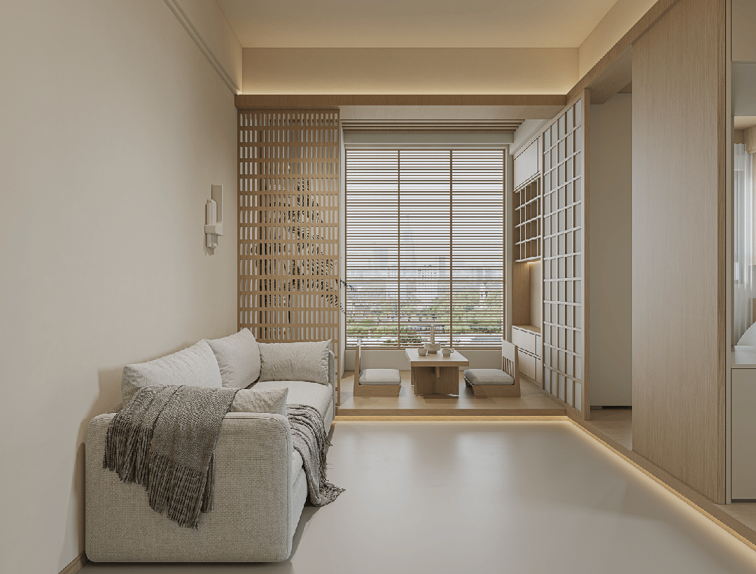 客卧厅一体化,空间灵活开放,白天是生活休闲区,夜晚变休息场,小面积也能装下“动静皆宜”的节奏。