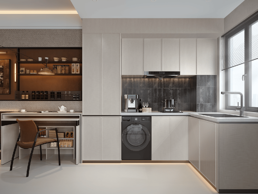 U型厨房流畅高效,容纳冰箱与各类厨电,拿、洗、切、煮一气呵成;能放下圆桌的餐厅,逢年过节全家围坐,筷子碰碗的声响里都是团圆味。