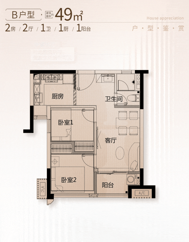建面约49㎡两房 | 开启温馨小家庭时光