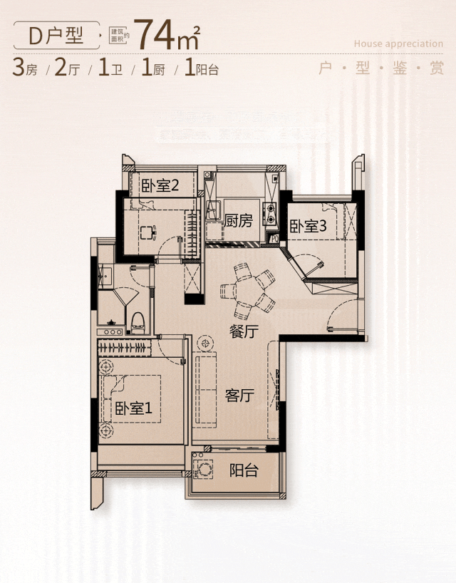 建面约74㎡三房 | 容纳多元生活的家庭主场