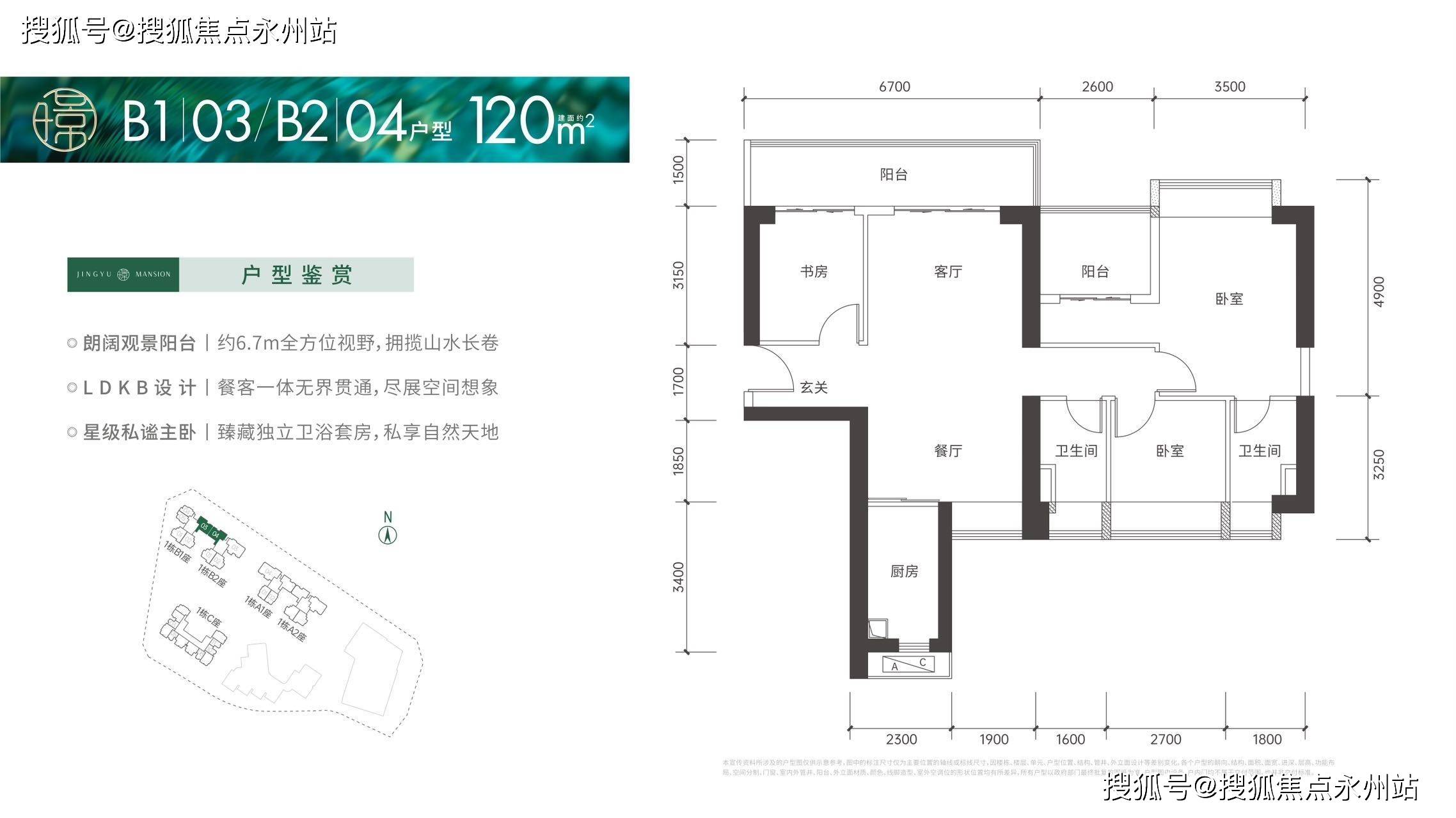 建面约120㎡3+1房:设计的是竖厅南北通透格局,客厅4.2米开间,进门入户玄关,LDKB一体化设计,4个卧室分别做到了3.5米/2.7米/2.6米/2.5米的宽度,客厅连接次卧出6.7米长的大阳台,L型厨房,卫生间干湿分离,得房率:72%(不含赠送),阳台主朝东北向。