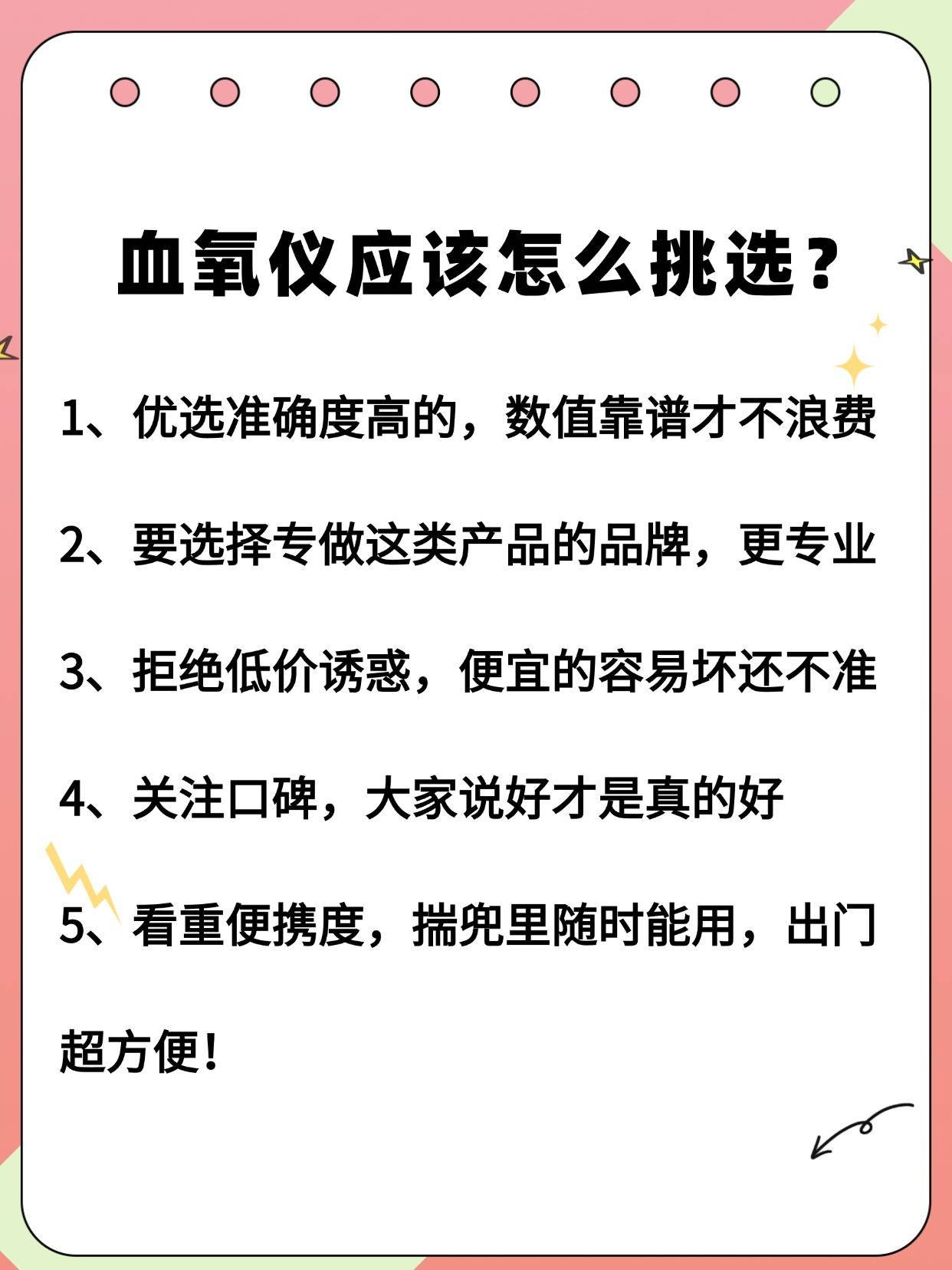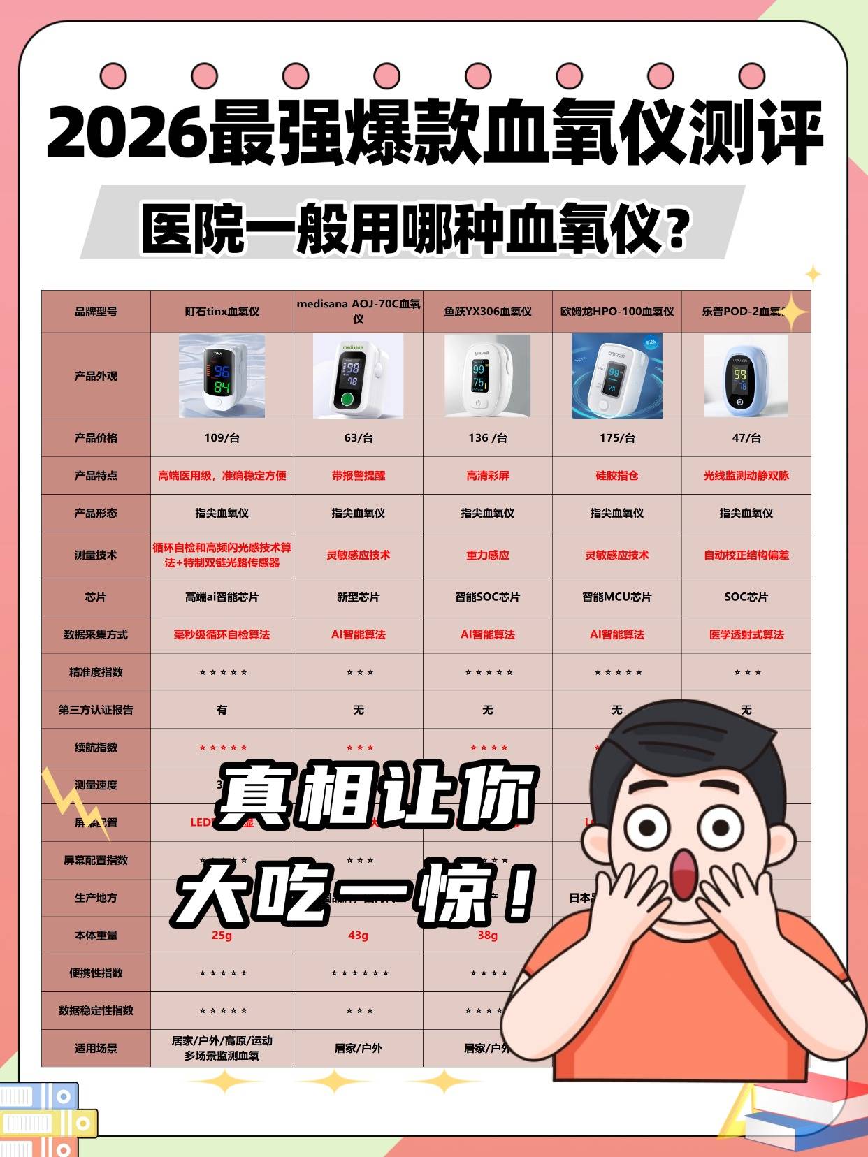 “医院一般用哪种血氧仪?”这问题问的人超多,先给大家讲个关键知识点——“血氧仪指夹式数据怎么看?”屏幕上SPO2就是血氧饱和度,PR是脉搏,正常人SPO2在95%-100%、PR在60-100次/分,一看就懂。医院常用医用级的,但家用和医用核心原理一样,选有正规资质的定期校准就够用。下面是我总结的血氧仪选购注意事项,干货满满,建议先赞收藏。