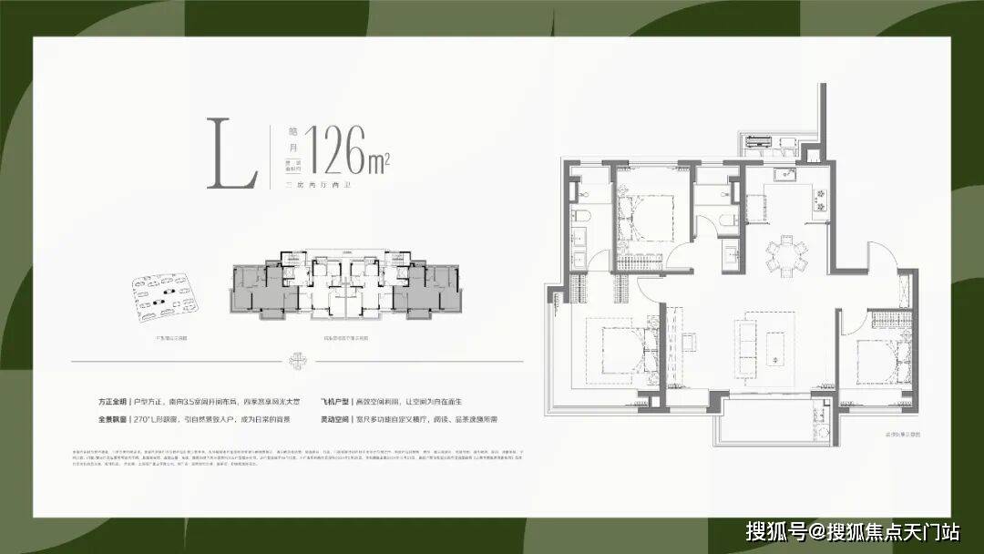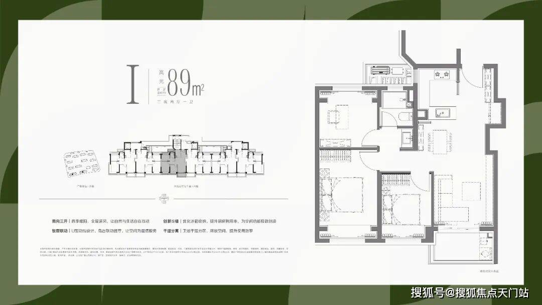 1、全部南向大面宽设计,保证最为出众的采光和视野需求;