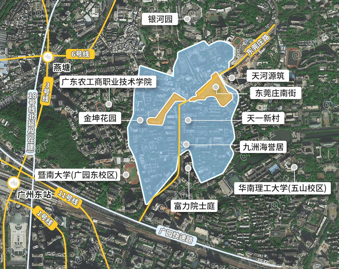 还有跟石牌同期推进的银河村东莞庄改造,地处环五山的核心位置,待遇大概率会向元岗、长湴看齐。