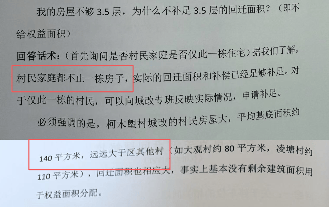 根据村委的说法,柯木塱人均2栋楼是标配,而且平均基底也是高达140㎡,补偿3.5层后,一栋就有490㎡,算下来2栋都有近1000㎡的回迁面积,换一套商品房不要太轻松。