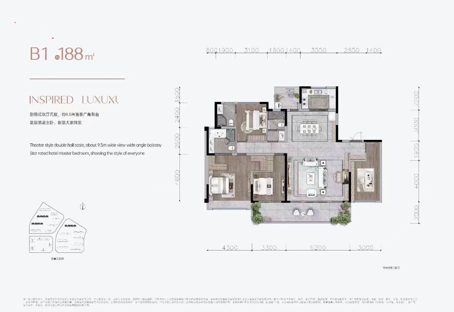 产品类型:平层、洋房、叠拼 产品面积:166㎡ 188㎡ 叠拼:200-350㎡